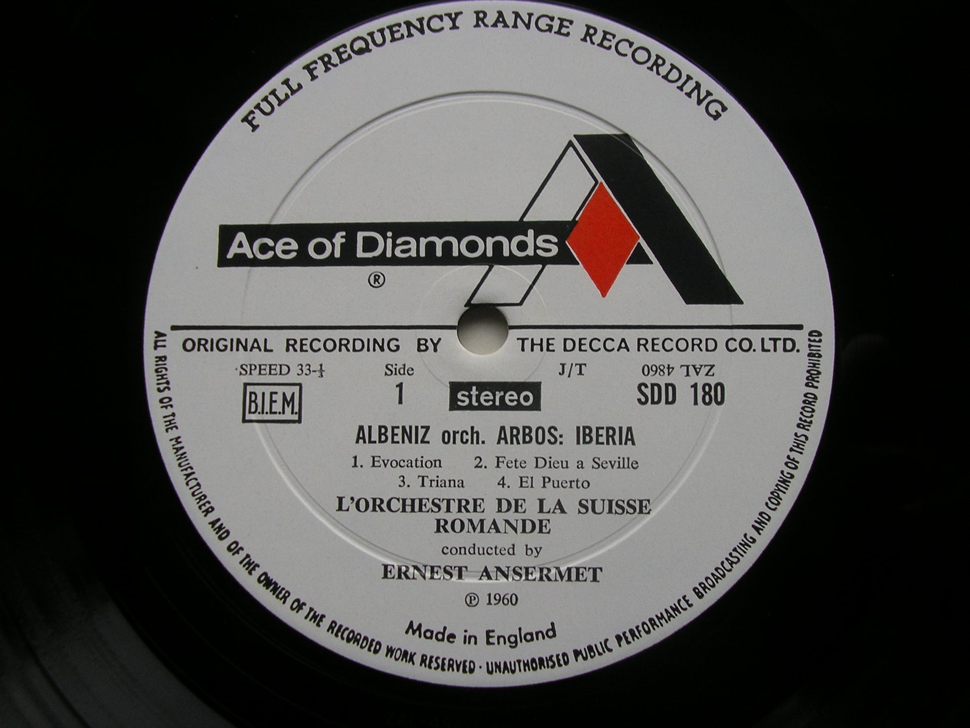 SDD 180  ALBENIZ: IBERIA / TURINA: DANZAS FANTASTICAS     ERNEST ANSERMET / PARIS CONSERVATOIRE ORCHESTRA