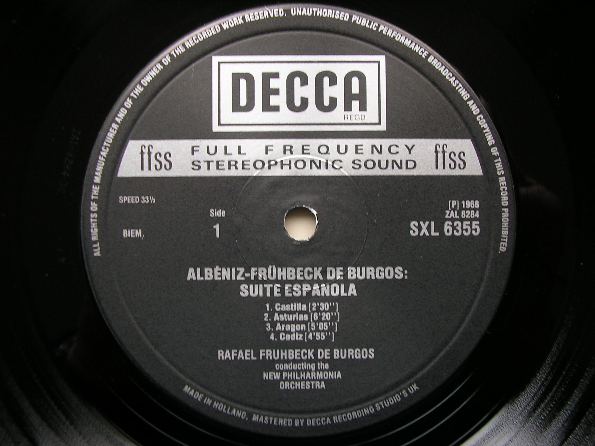 SXL 6355  ALBENIZ: SUITE ESPANOLA  RAFAEL FRUHBECK DE BURGOS / NEW PHILHARMONIA ORCHESTRA