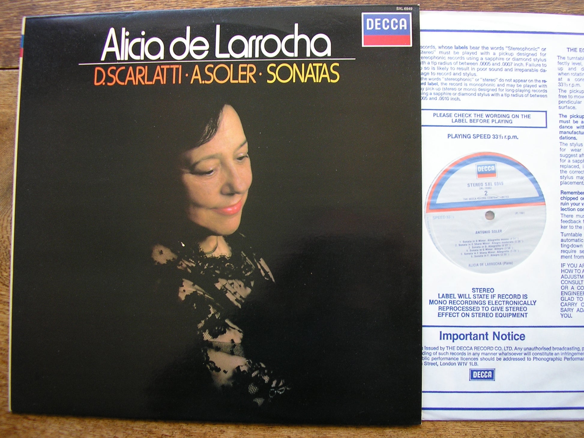ALICIA DE LARROCHA PLAYS SONATAS BY SOLER & DOMENICO SCARLATTI SXL 6949