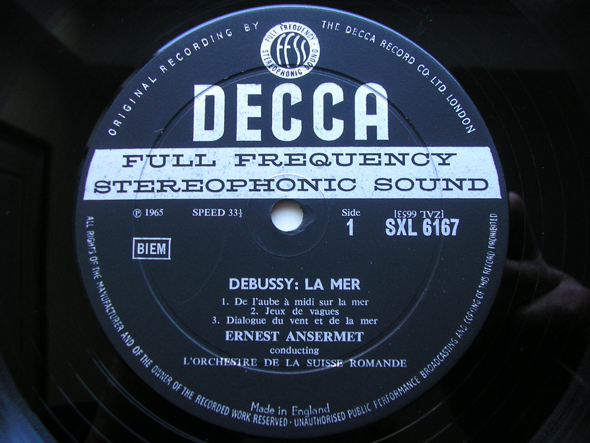 SXL 6167  DEBUSSY: LA MER / KHAMMA / RAPSODY FOR CLARINET & ORCHESTRA    ERNEST ANSERMET / SUISSE ROMANDE ORCHESTRA