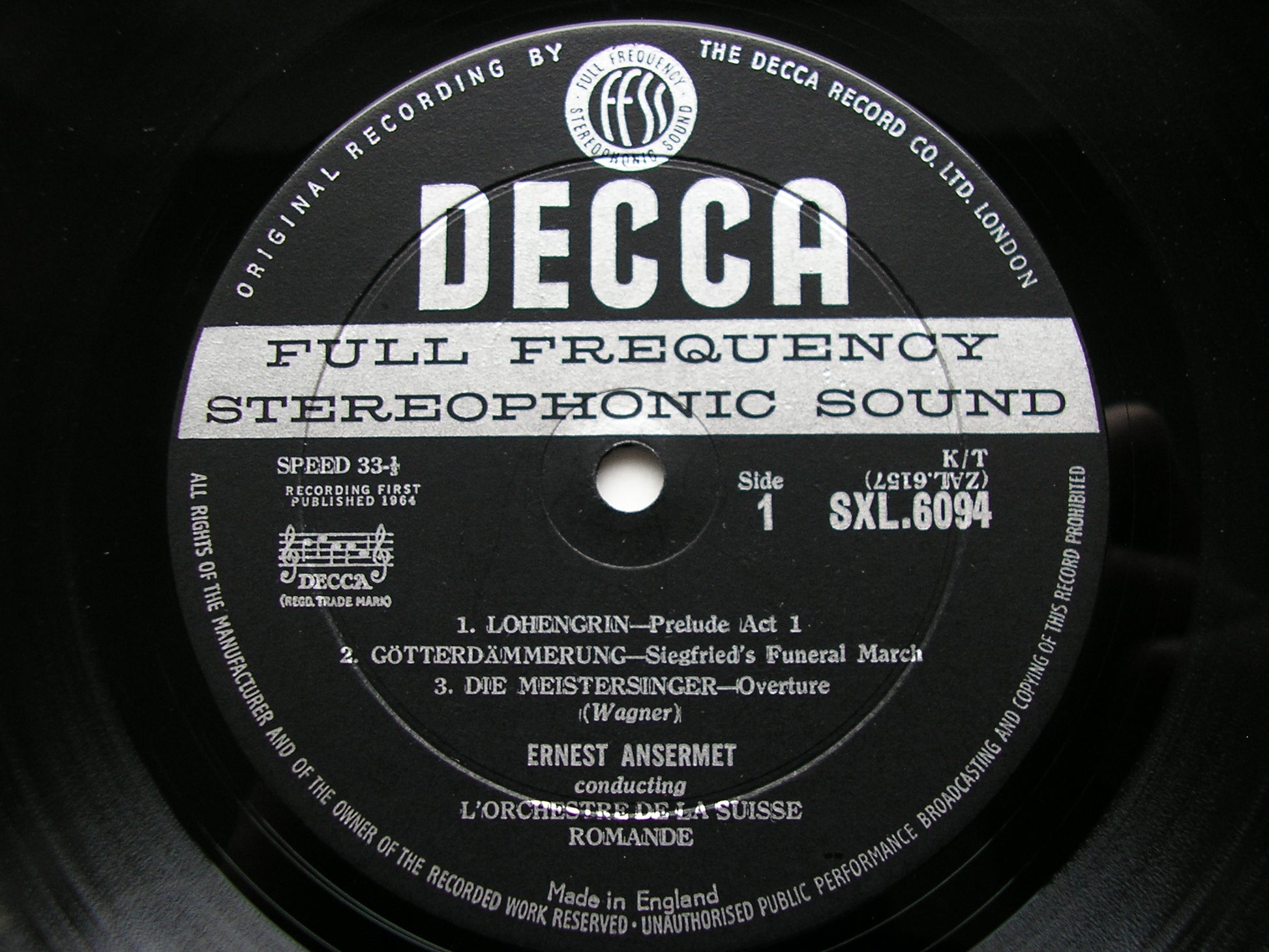 SXL 6094 ANSERMET CONDUCTS WAGNER: LOHENGRIN / PARSIFAL / DIE MEISTERSINGER / TWILIGHT OF THE GODS ED1