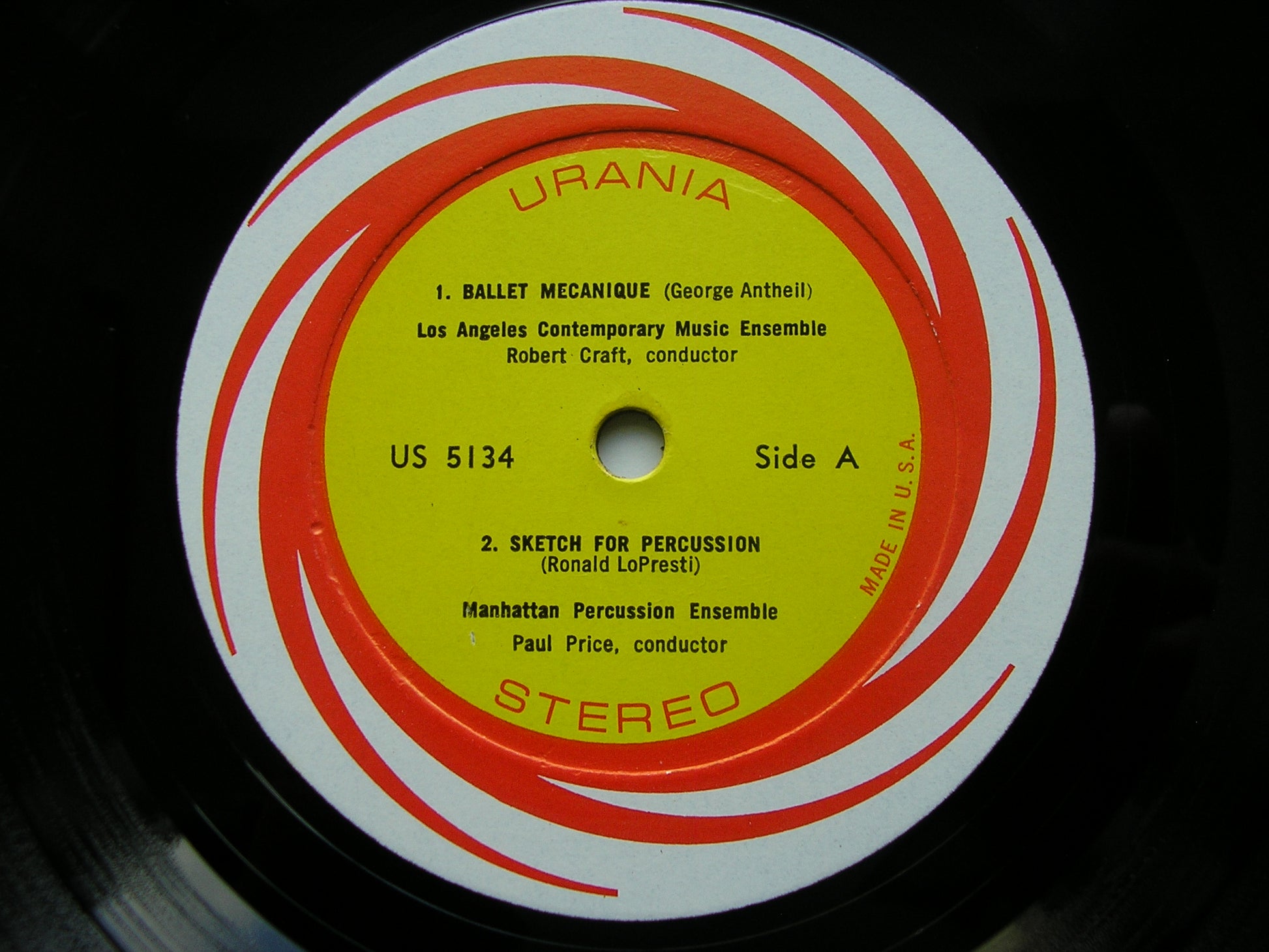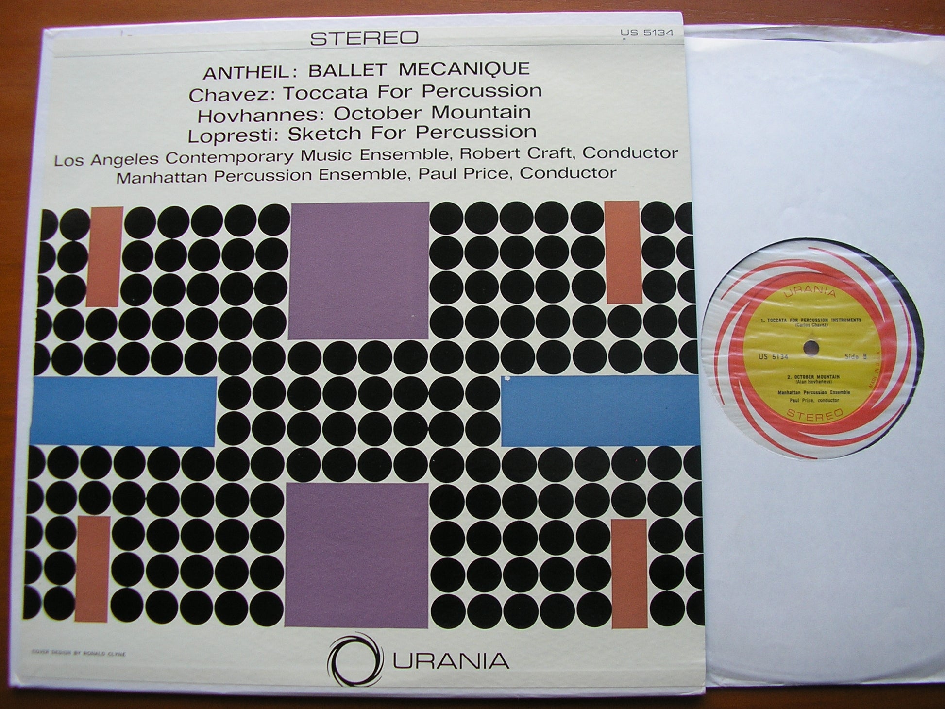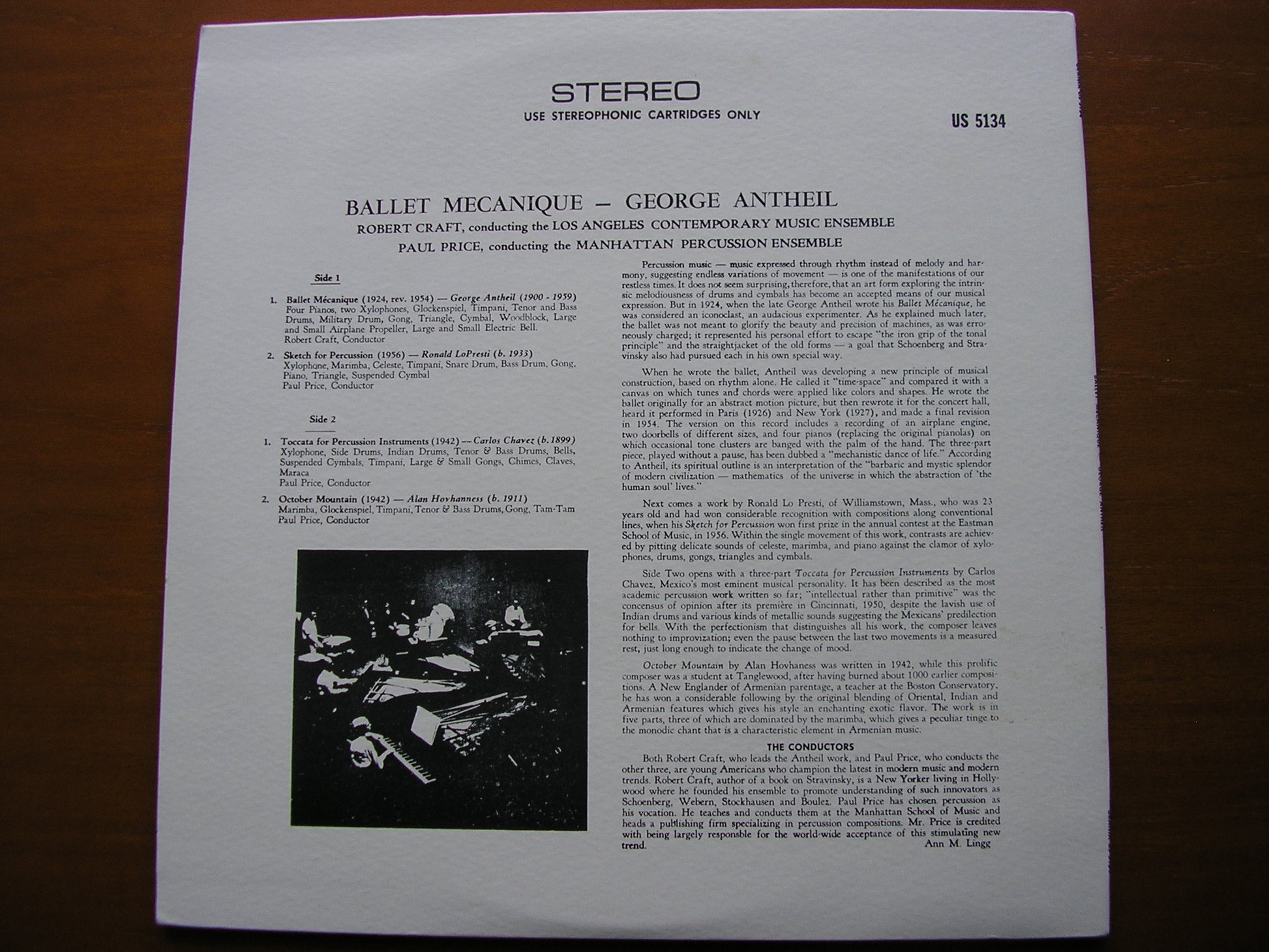 US 5134  ANTHEIL: BALLET MECANIQUE / CHAVEZ: TOCCATA FOR PERCUSSION / LOPRESTI: SKETCH FOR PERCUSSION / HOVHANNES: OCTOBER MOUNTAIN    ROBERT CRAFT / LOS ANGELES CONTEMPORARY MUSIC ENSEMBLE / PAUL PRICE /MANHATTAN PERCUSSION ENSEMBLE