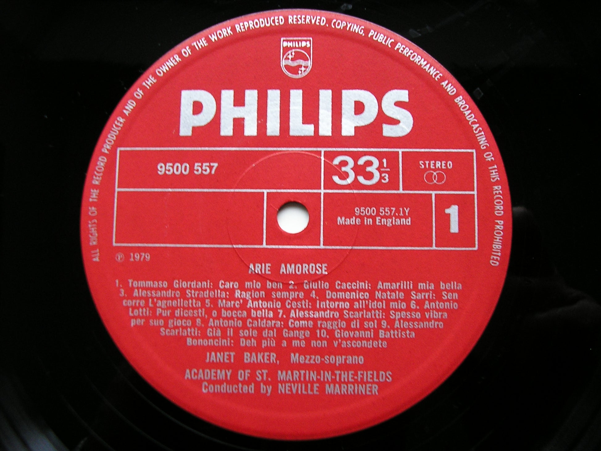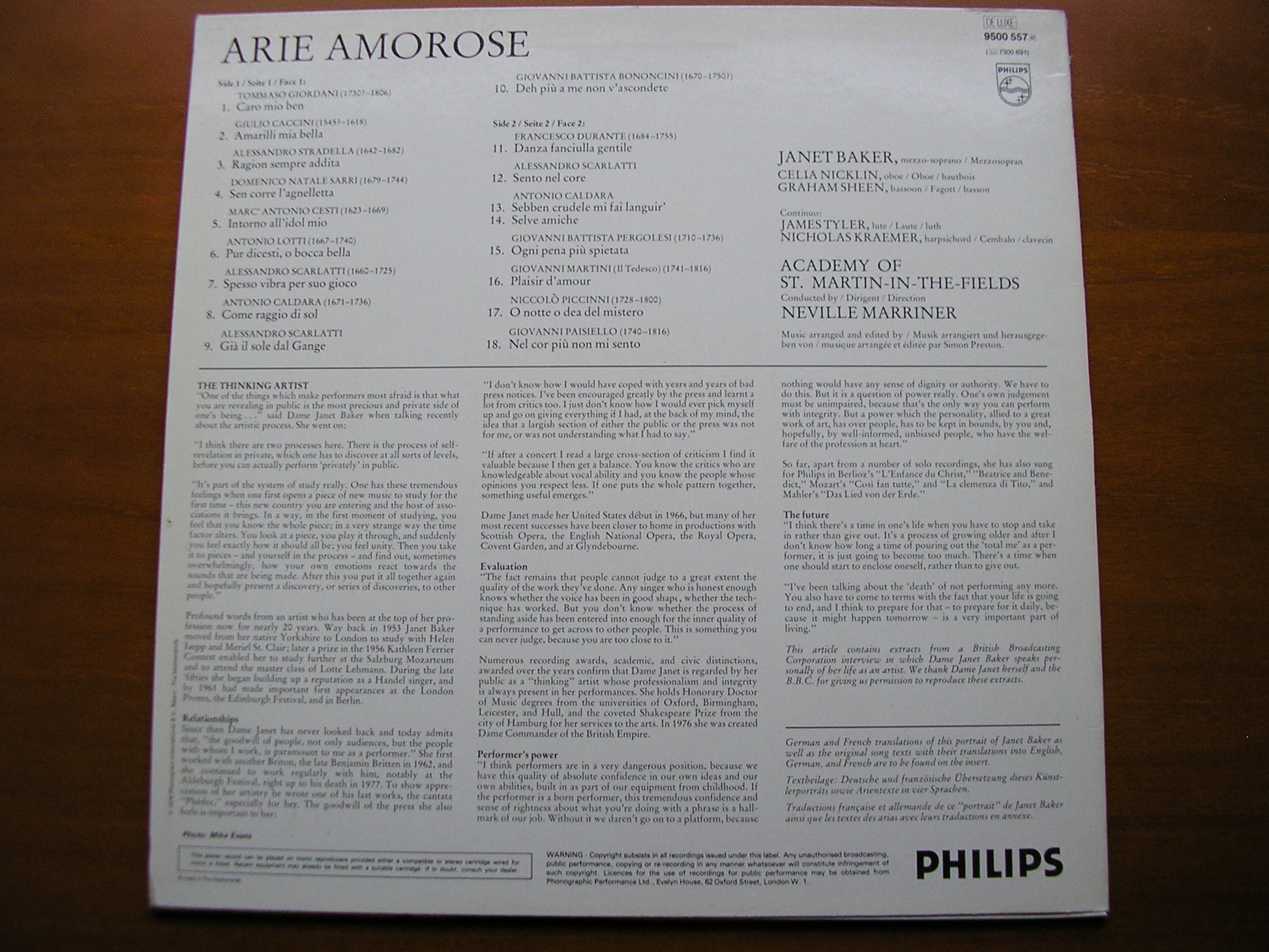 9500 557  ARIE AMOROSE: LOTTI / SCARLATTI / BONONCINI / MARTINI / STRADELLA     JANET BAKER / ACADEMY OF ST MARTIN IN THE FIELDS / NEVILLE MARRINER