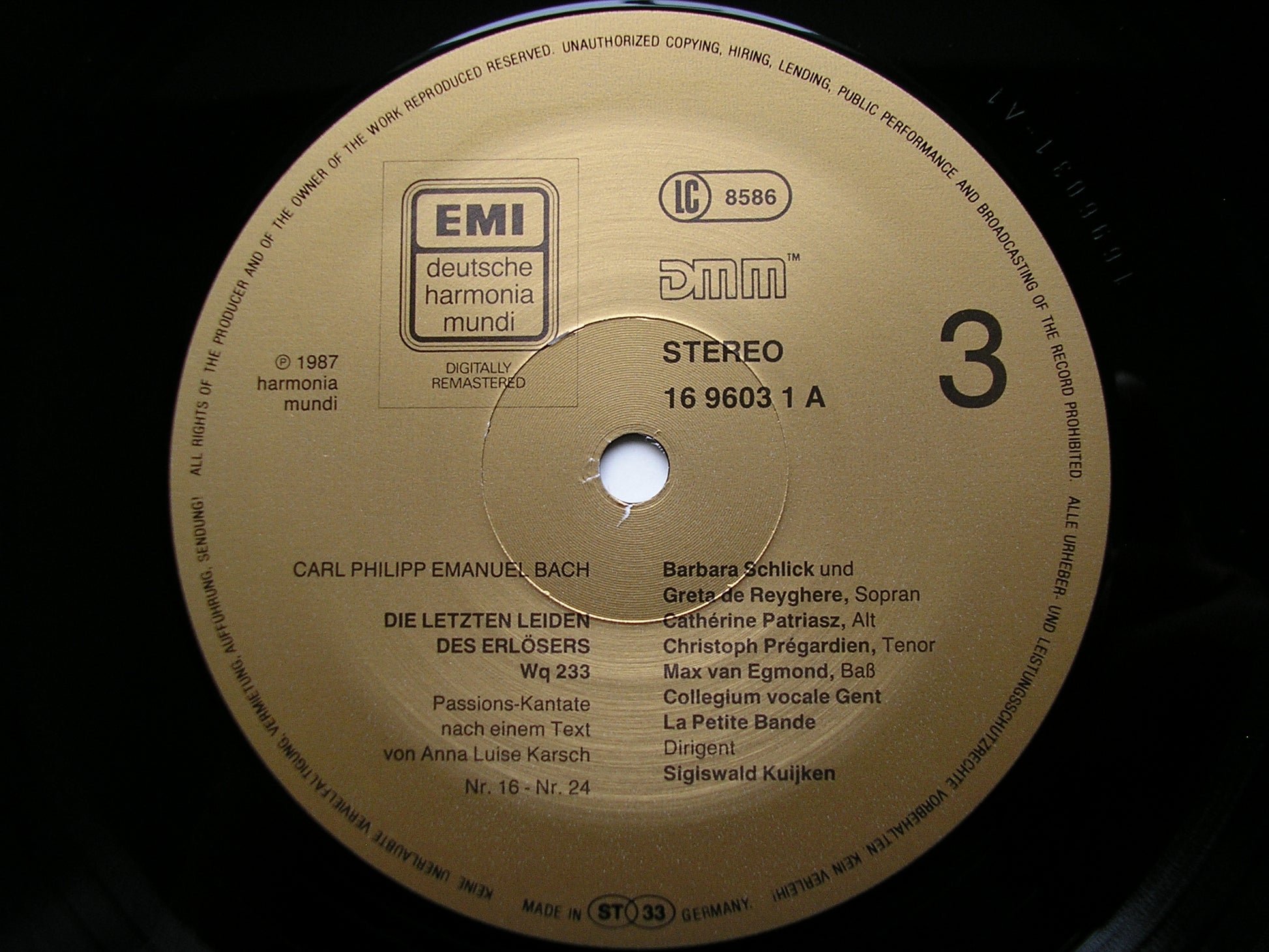 BACH, CPE: THE LAST SUFFERINGS OF THE SAVIOUR SOLOISTS / LA PETITE BAND / KUIJKEN 2LP 16 9602