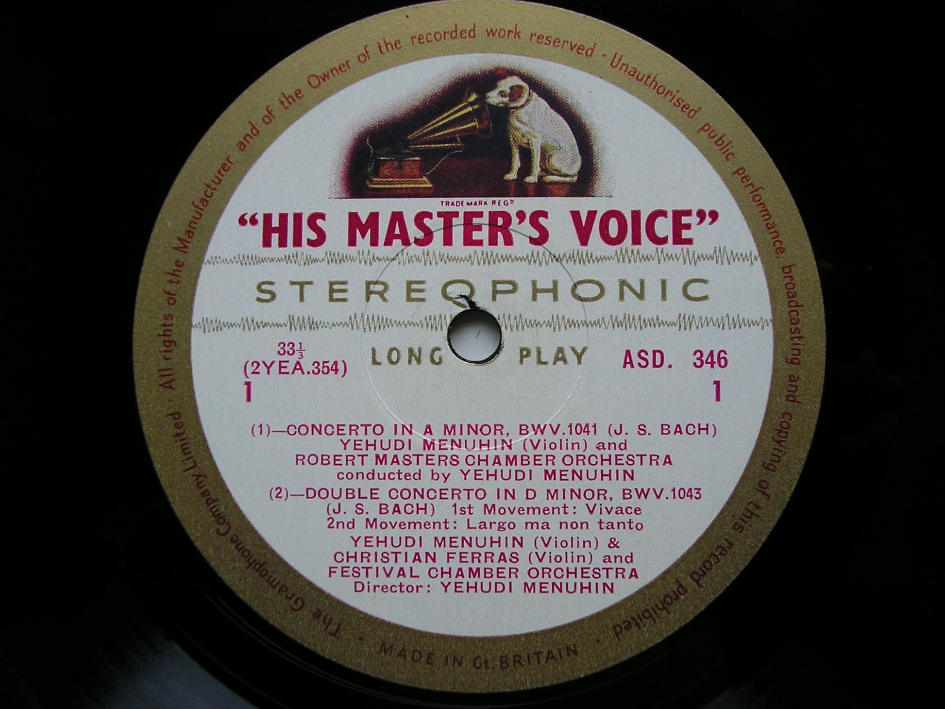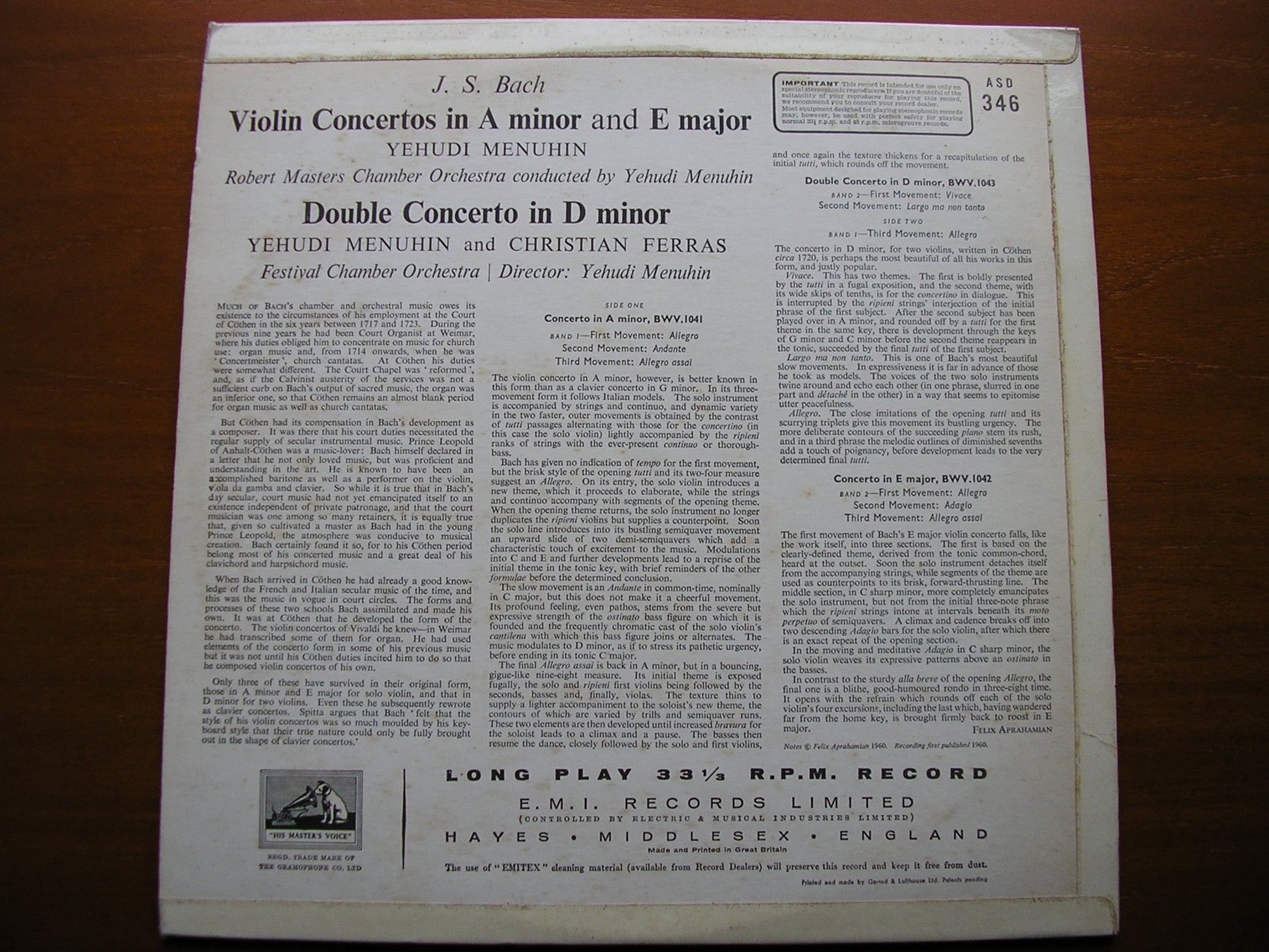 ASD 346  BACH: DOUBLE CONCERTO / CONCERTOS in E & A   YEHUDI MENUHIN / CHRISTIAN FERRAS / FESTIVAL CHAMBER ORCHESTRA / YEHUDI MENUHIN