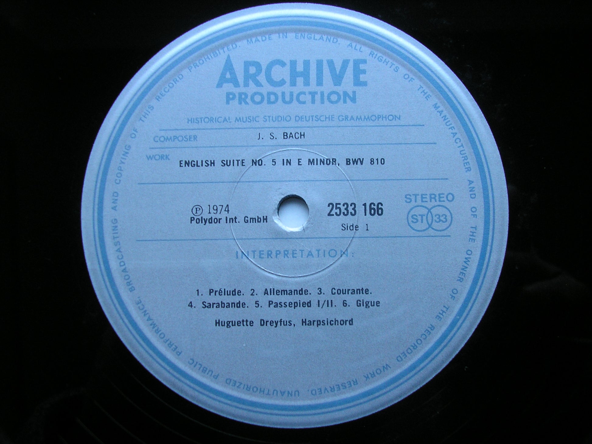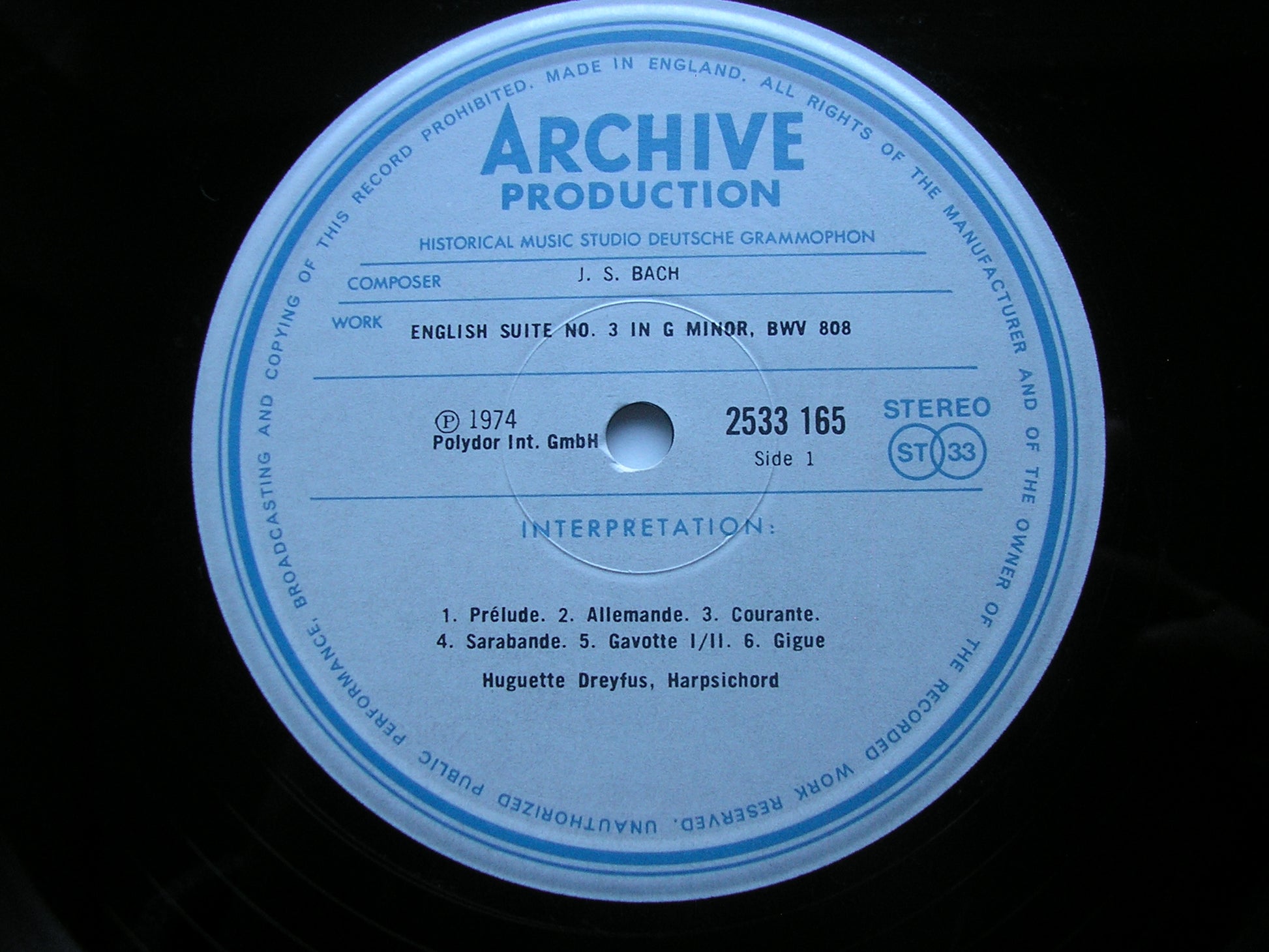 BACH: ENGLISH SUITES BWV 808 - 811 DREYFUS 2533 164 / 165 / 166