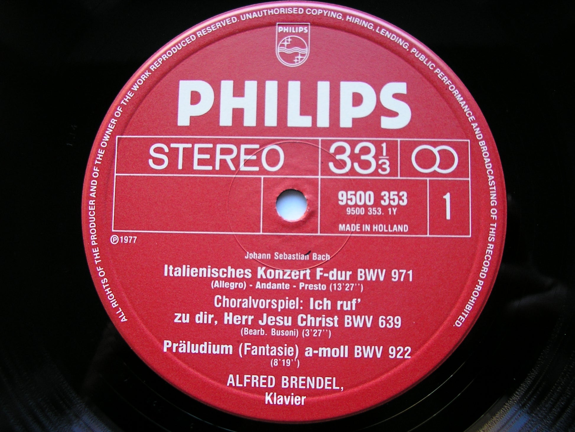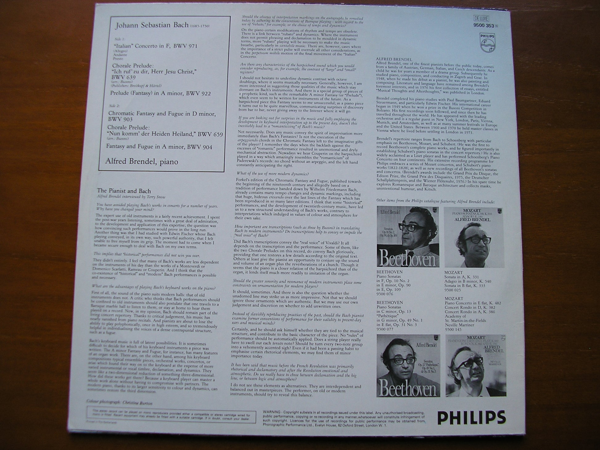 9500 353  BACH: ITALIAN CONCERTO / CHORALE PRELUDES BWV 639 & BWV 659 / PRELUDE BWV 922 / FANTASY & FUGUE BWV 904 / CHROMATIC FANTASY BWV 903     ALFRED BRENDEL