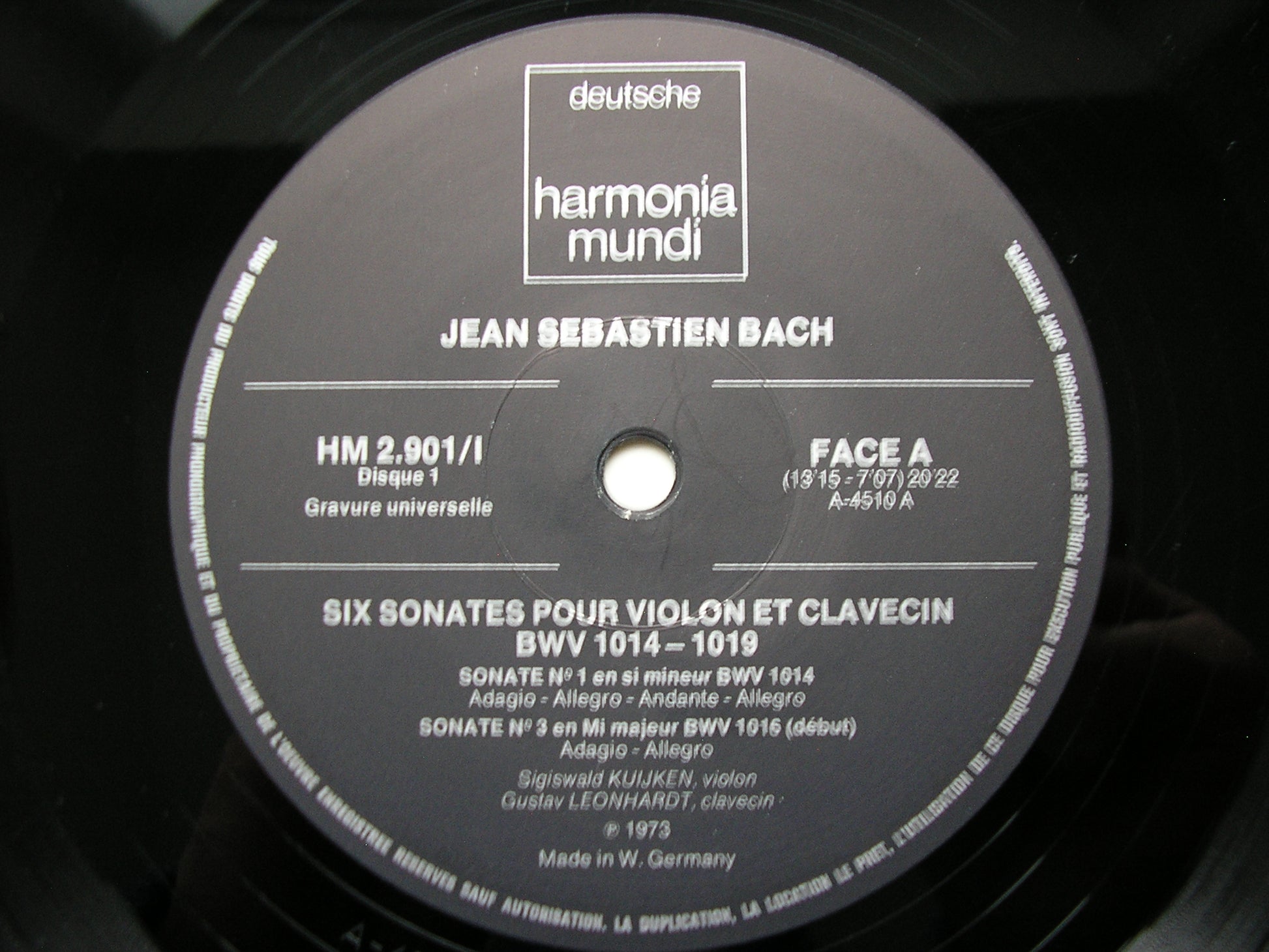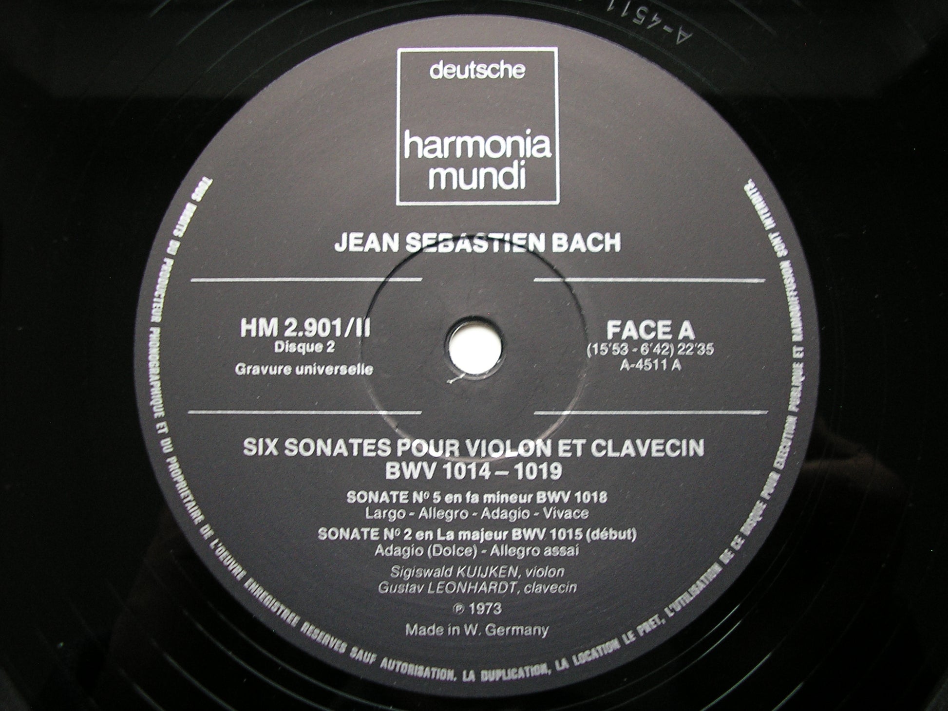 HM 2.901  BACH: SIX SONATAS FOR VIOLIN & HARPSICHORD      SIGISWALD KUIJKEN / GUSTAV LEONHARDT