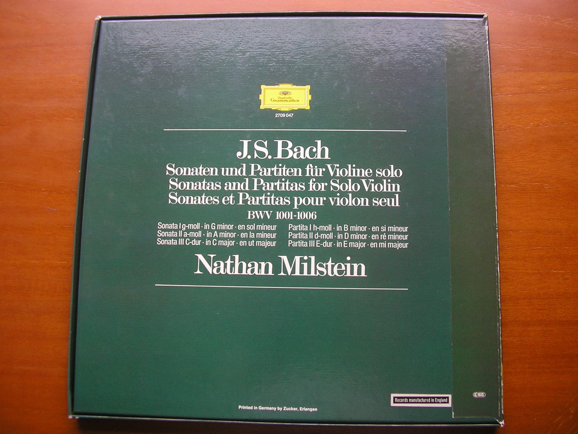 2709 047  BACH: SONATAS & PARTITAS FOR VIOLIN SOLO    BWV 1001 - 1006     NATHAN MILSTEIN