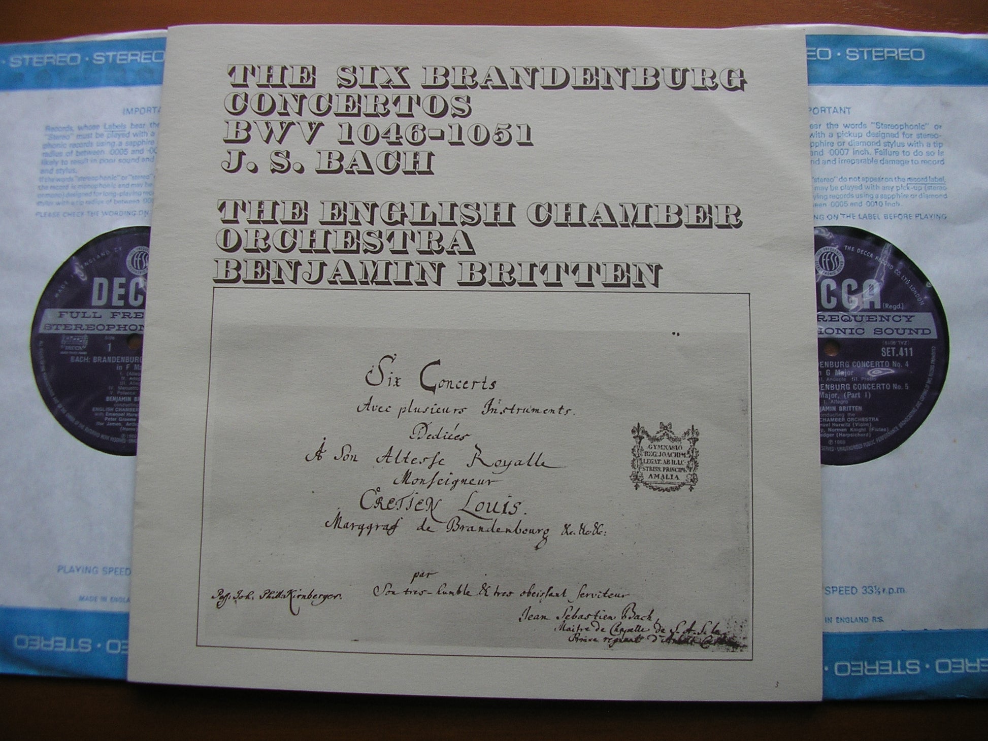 BACH: THE BRANDENBURG CONCERTOS BENJAMIN BRITTEN / ENGLISH CHAMBER ORCHESTRA SET 410-411