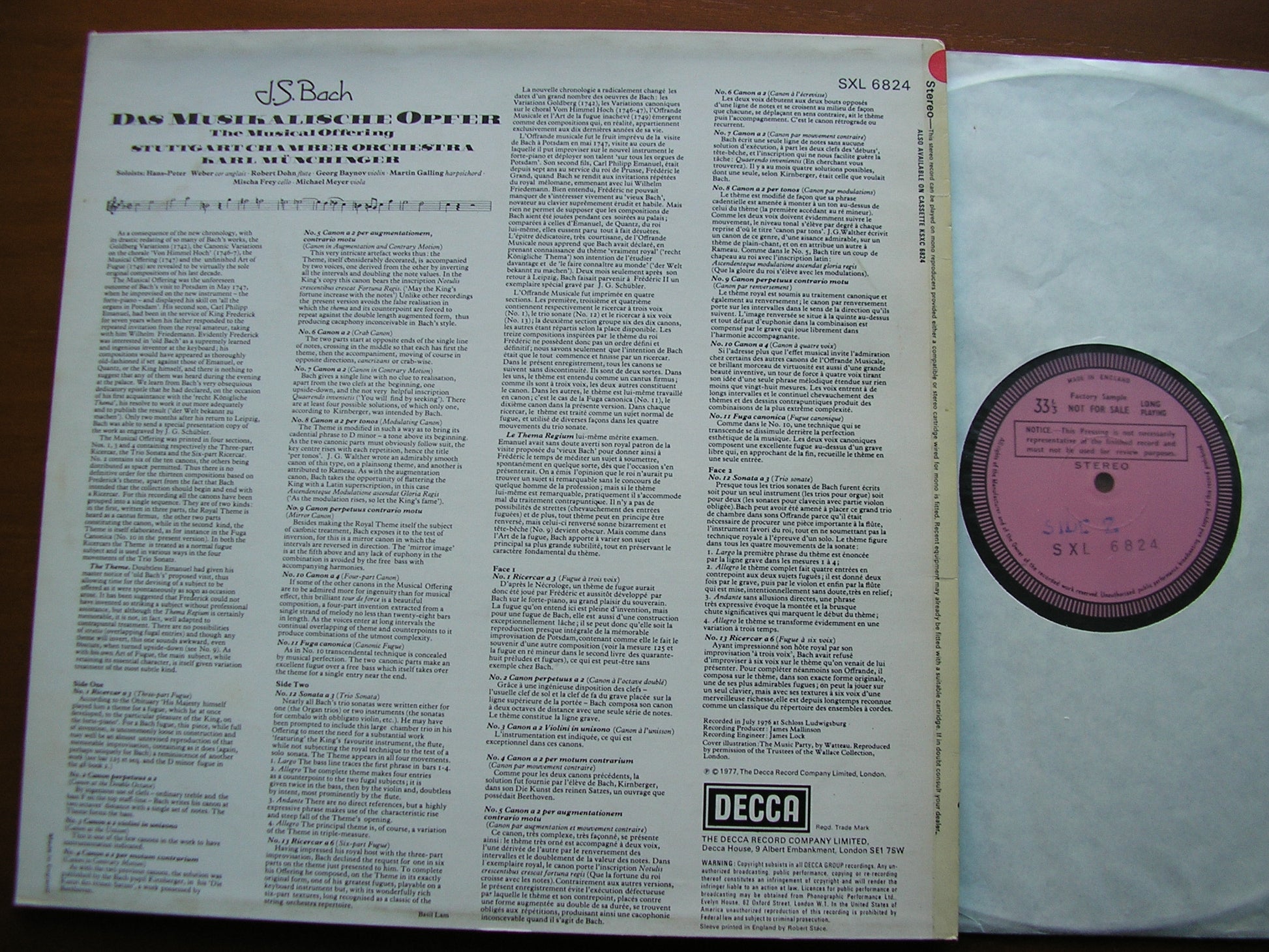 SXL 6824  BACH: MUSICAL OFFERING    KARL MUNCHINGER / STUTTGART CHAMBER ORCHESTRA