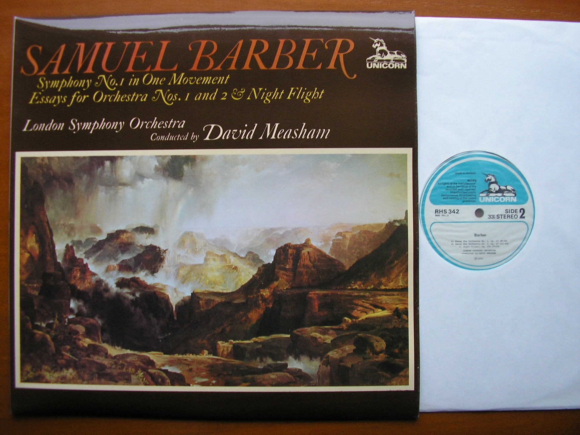 RHS 342  BARBER: SYMPHONY No. 1 / ESSAYS FOR ORCHESTRA Nos. 1 & 2 / NIGHT FLIGHT       DAVID MEASHAM / LONDON SYMPHONY ORCHESTRA