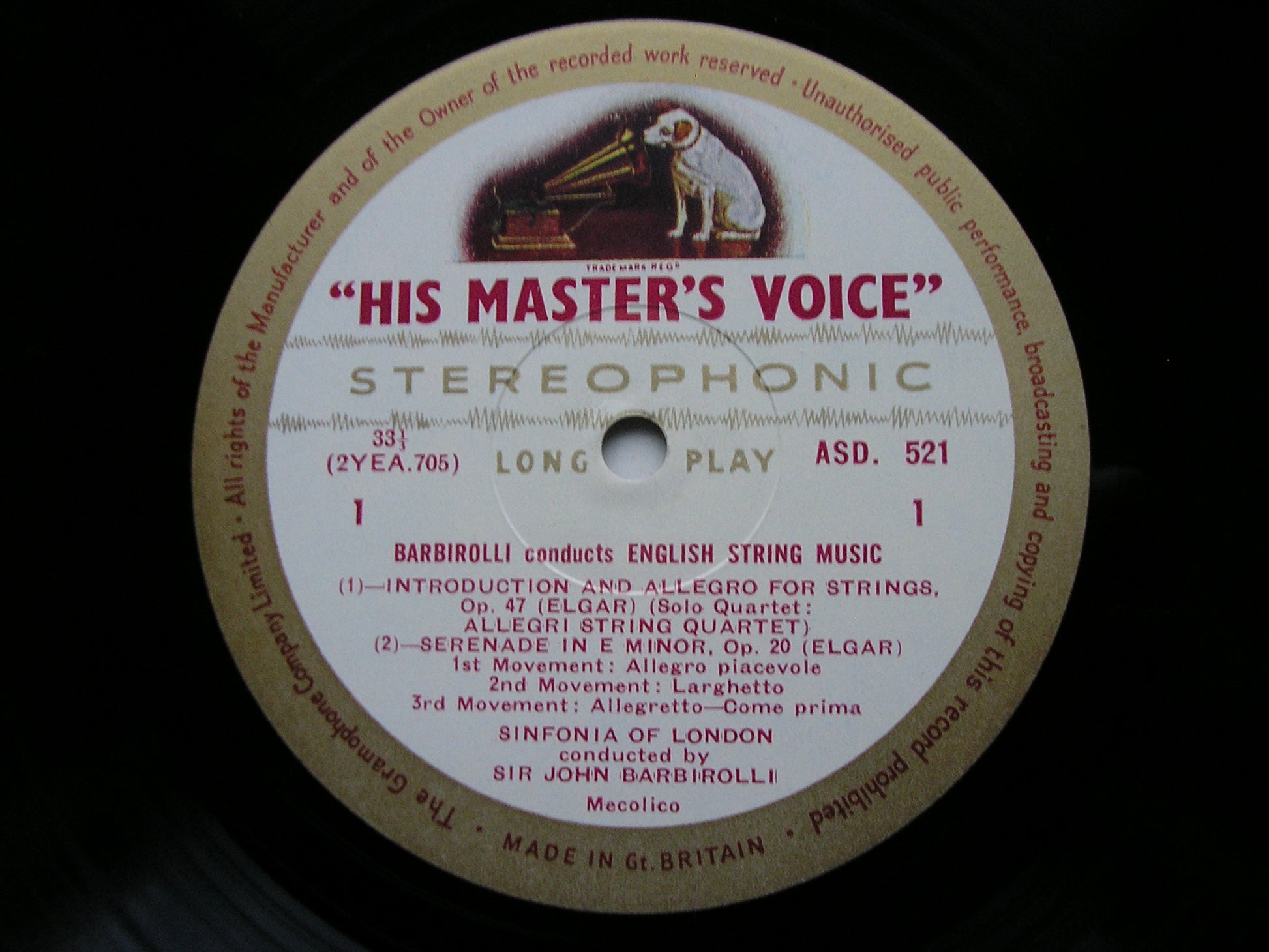 ASD 521 BARBIROLLI CONDUCTS ENGLISH MUSIC FOR STRINGS: ELGAR / VAUGHAN WILLIAMS   SIR JOHN BARBIROLLI / SINFONIA OF LONDON / ALLEGRI QUARTET