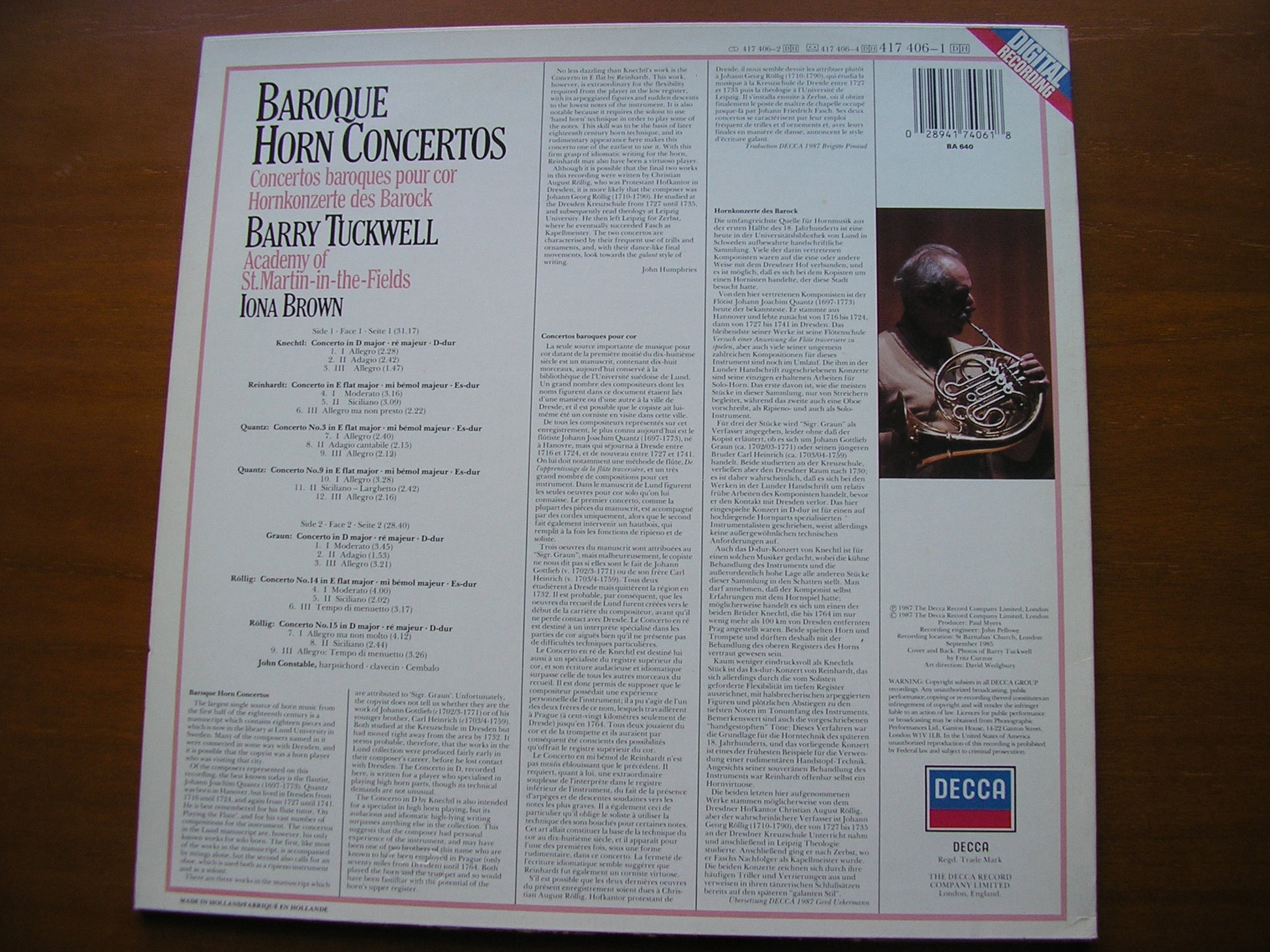 417 406  BAROQUE HORN CONCERTOS       BARRY TUCKWELL / ACADEMY OF SAINT MARTIN IN THE FIELDS / IONA BROWN