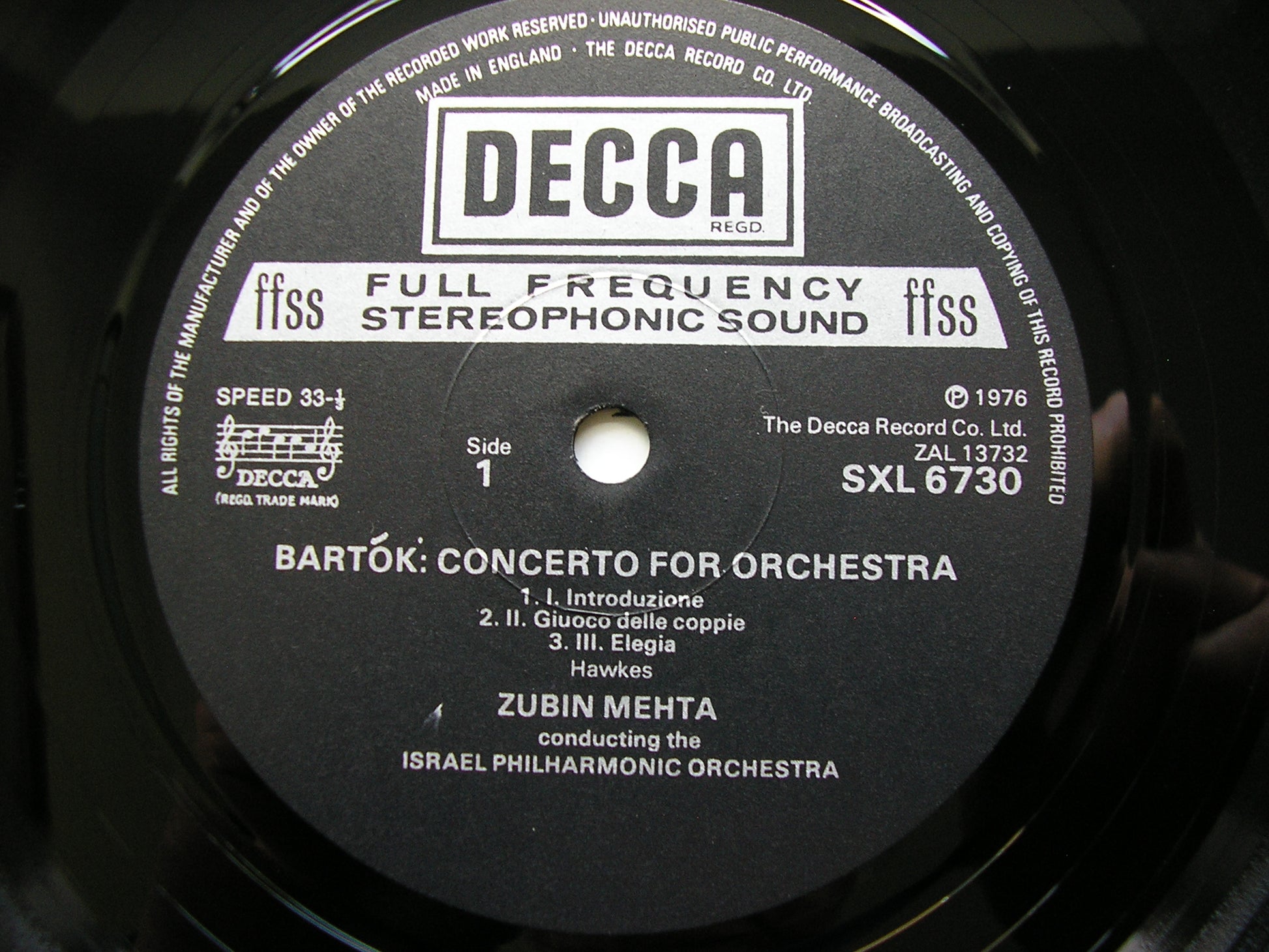 SXL 6730 BARTOK: CONCERTO FOR ORCHESTRA / HUNGARIAN PICTURES      ZUBIN MEHTA / ISRAEL PHILHARMONIC ORCHESTRA