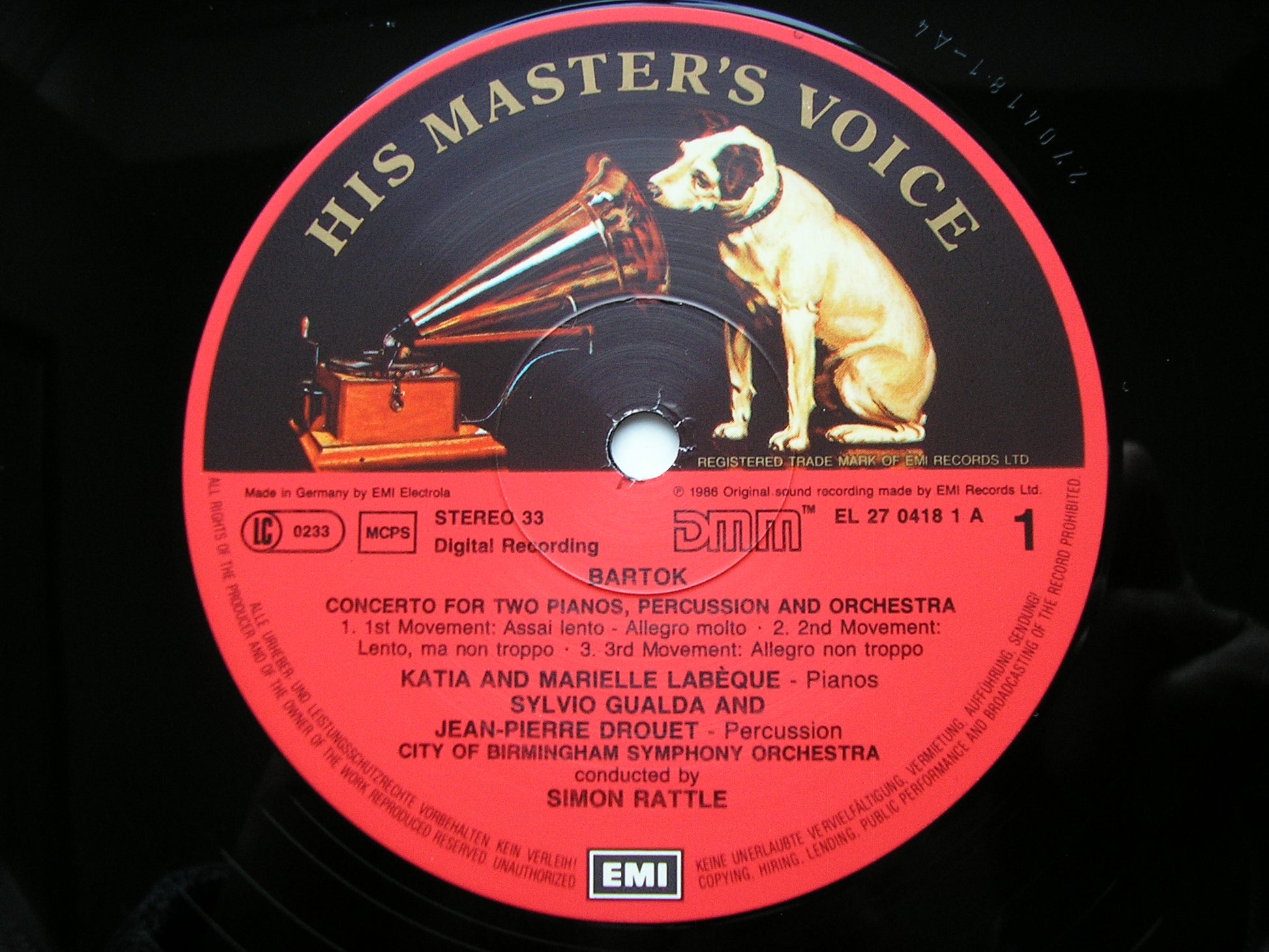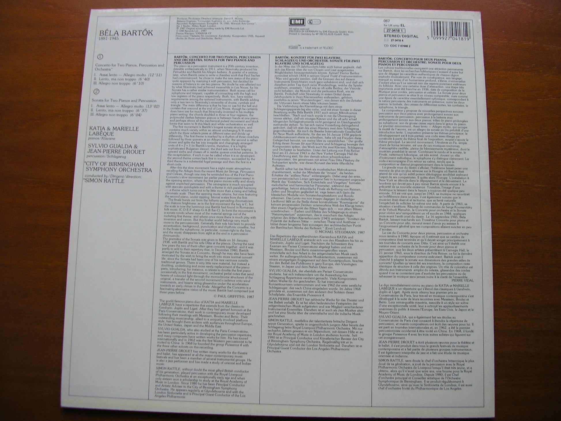27 0418  BARTOK: CONCERTO FOR TWO PIANOS & PERCUSSION / SONATA FOR TWO PIANOS & PERCUSSION     KATIA & MARIELLE LABEQUE / CITY OF BIRMINGHAM SYMPHONY ORCHESTRA / SIMON RATTLE