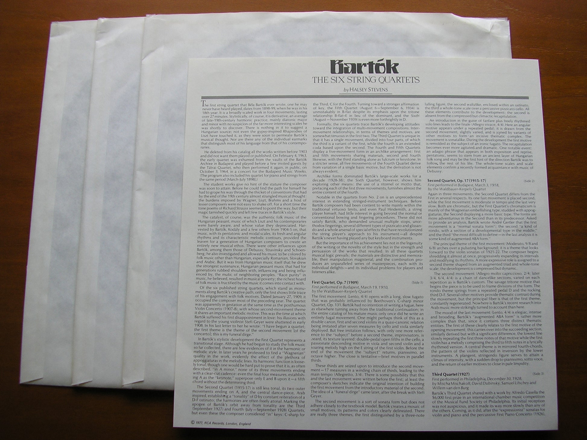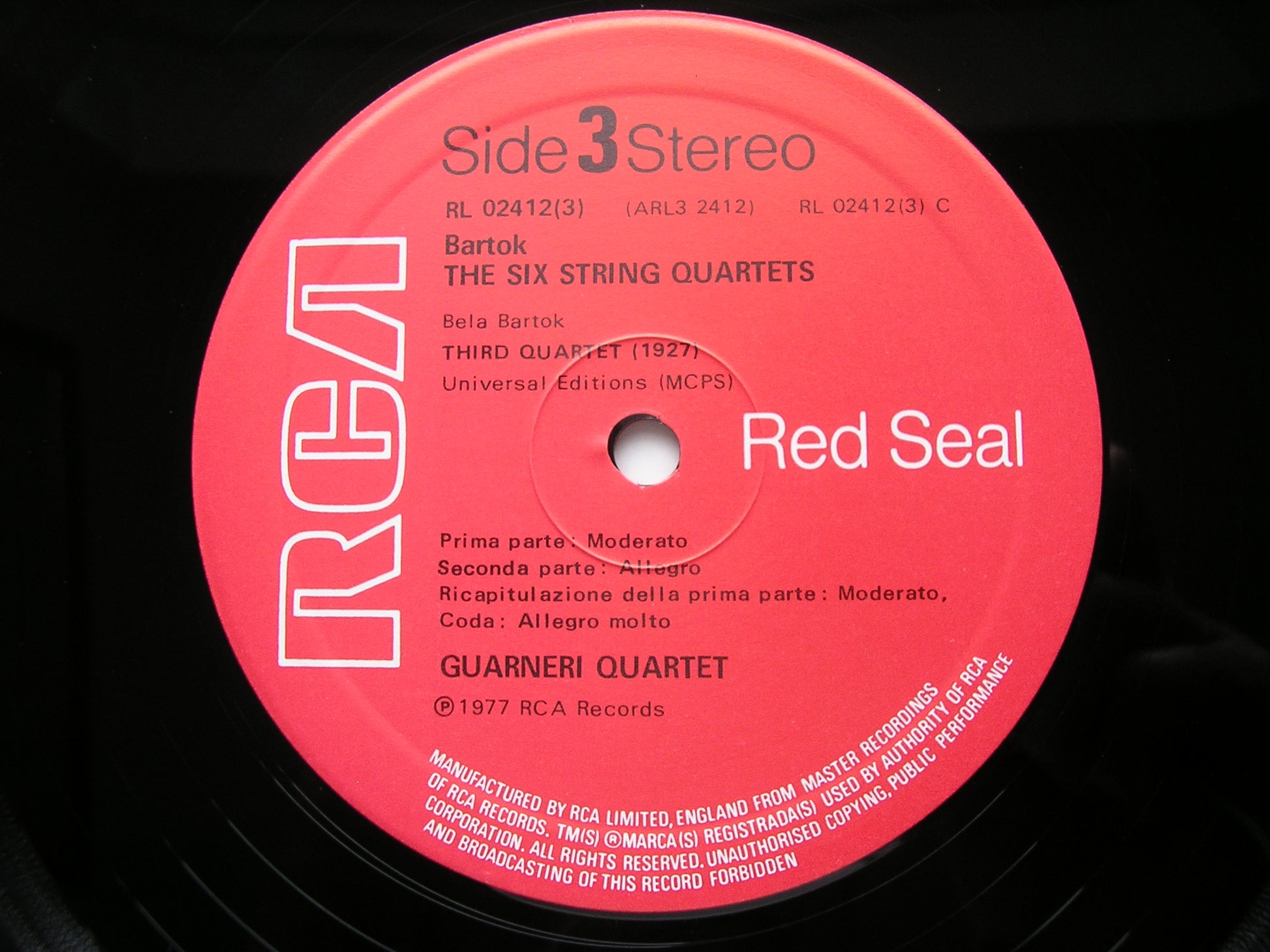 BARTOK: THE STRING QUARTETS GUARNERI QUARTET 3 LP RL 02412