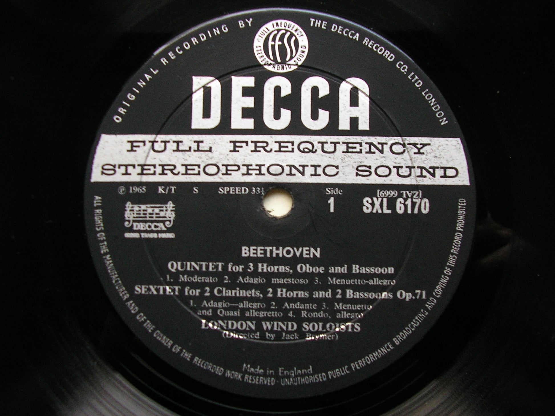 SXL 6170  BEETHOVEN: COMPLETE MUSIC FOR WIND BAND      JACK BRYMER / LONDON WIND SOLOISTS