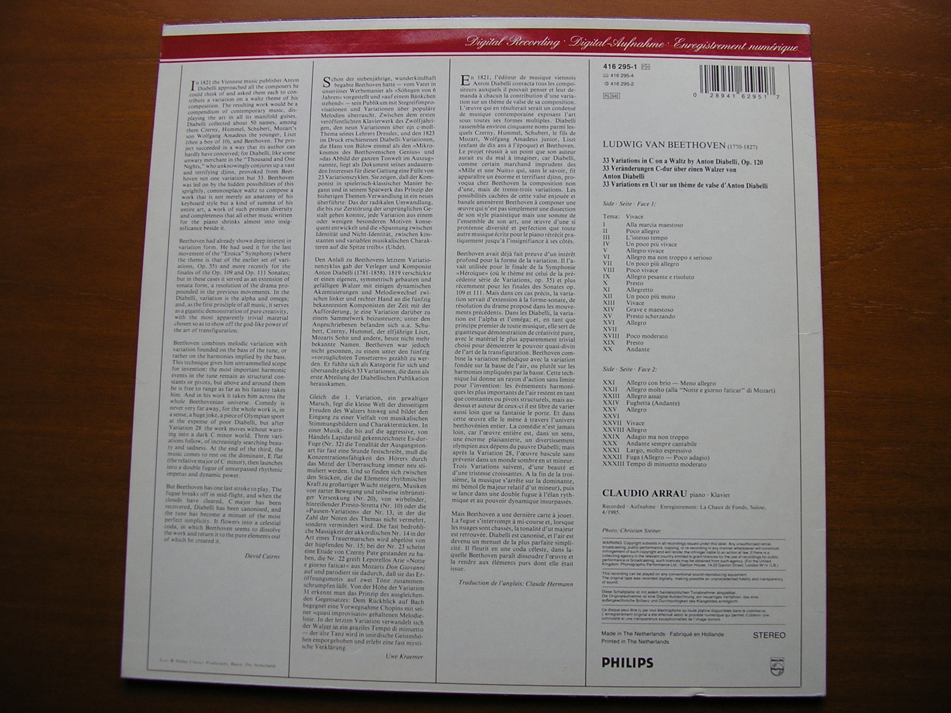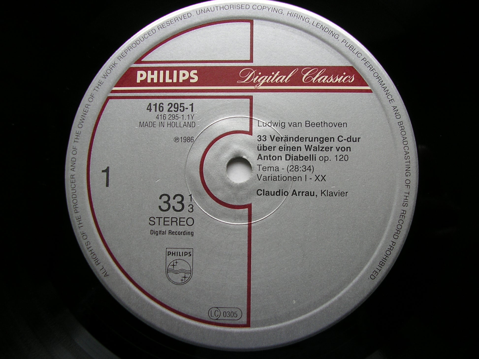 416 295  BEETHOVEN: DIABELLI VARIATIONS      CLAUDIO ARRAU