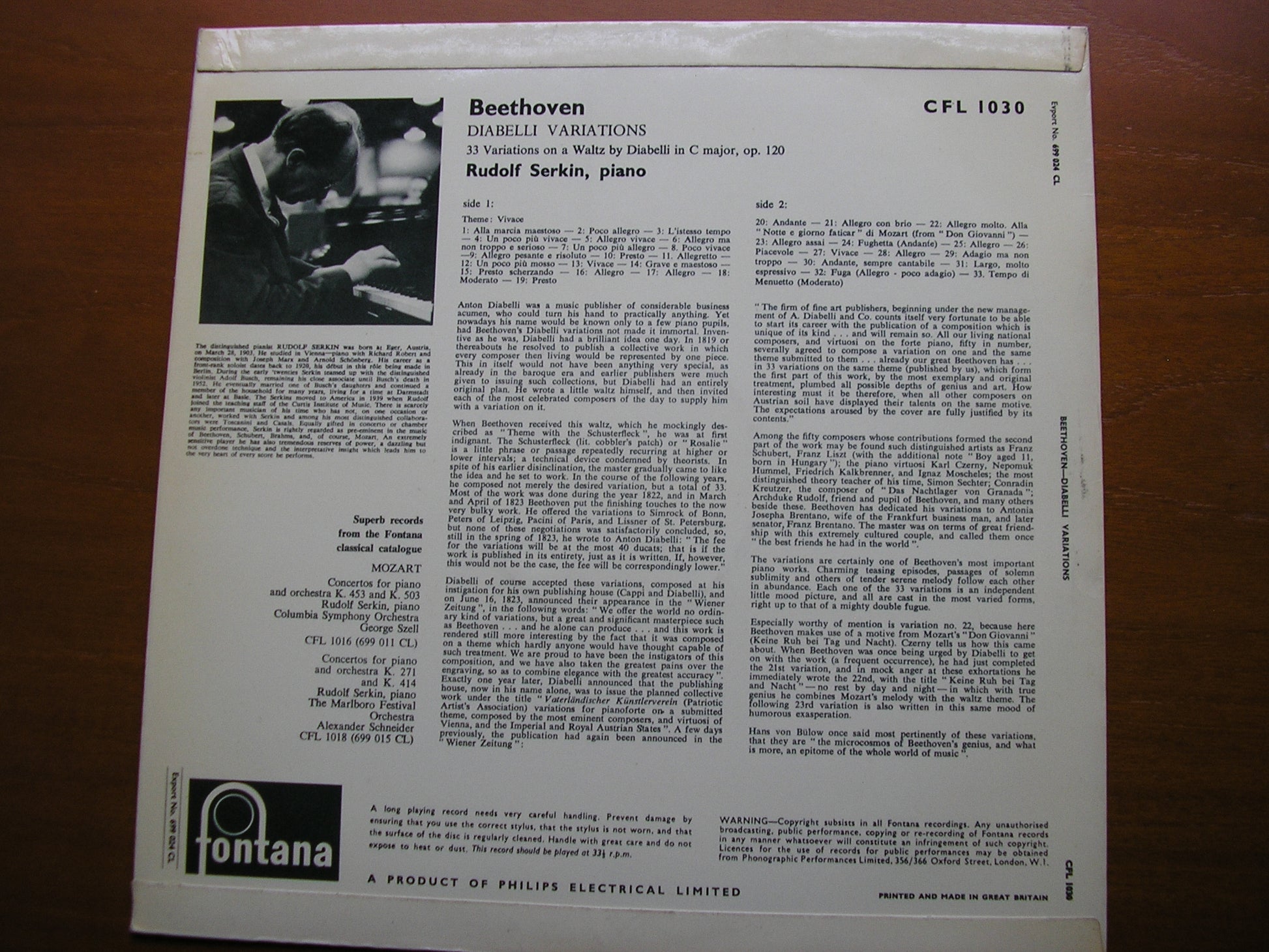 CFL 1030  BEETHOVEN: DIABELLI VARIATIONS     RUDOLF SERKIN