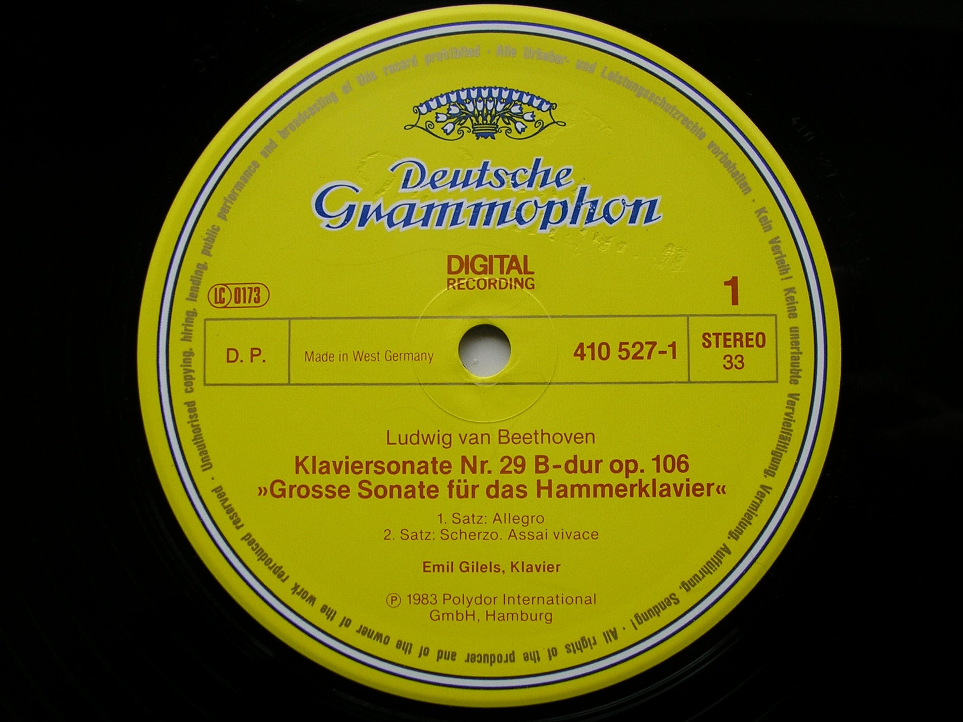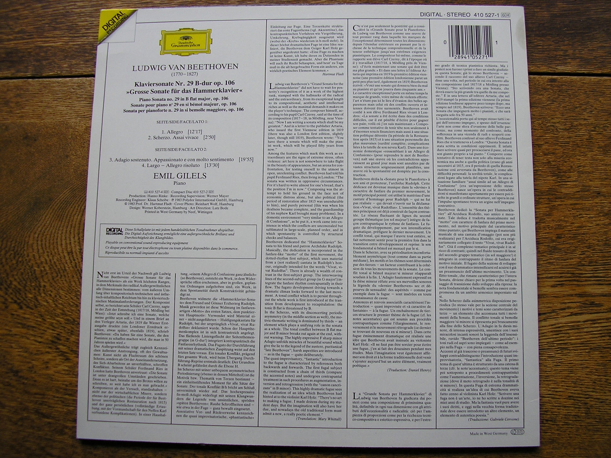 410 527  BEETHOVEN: PIANO SONATA in B Op. 106   EMIL GILELS