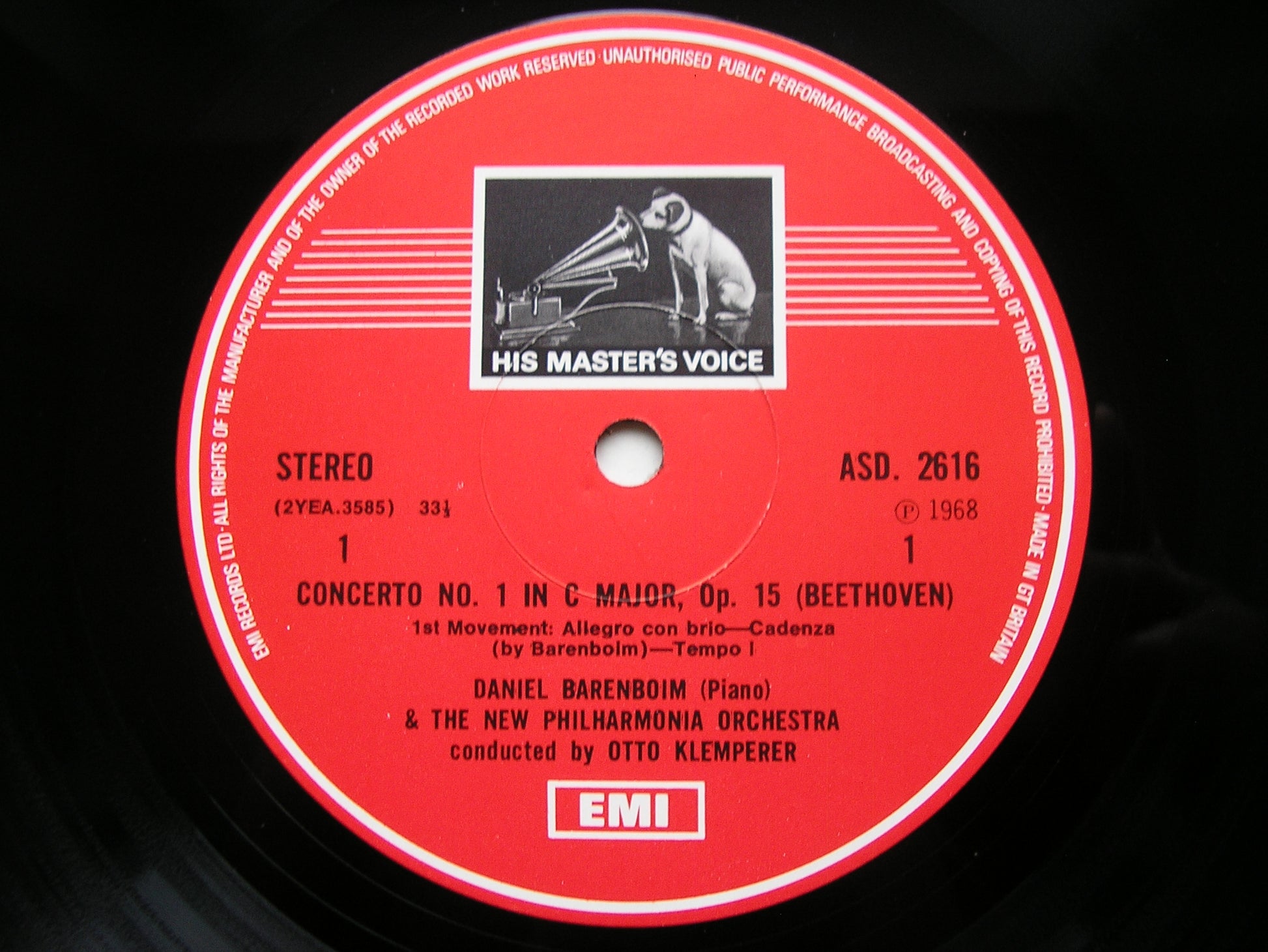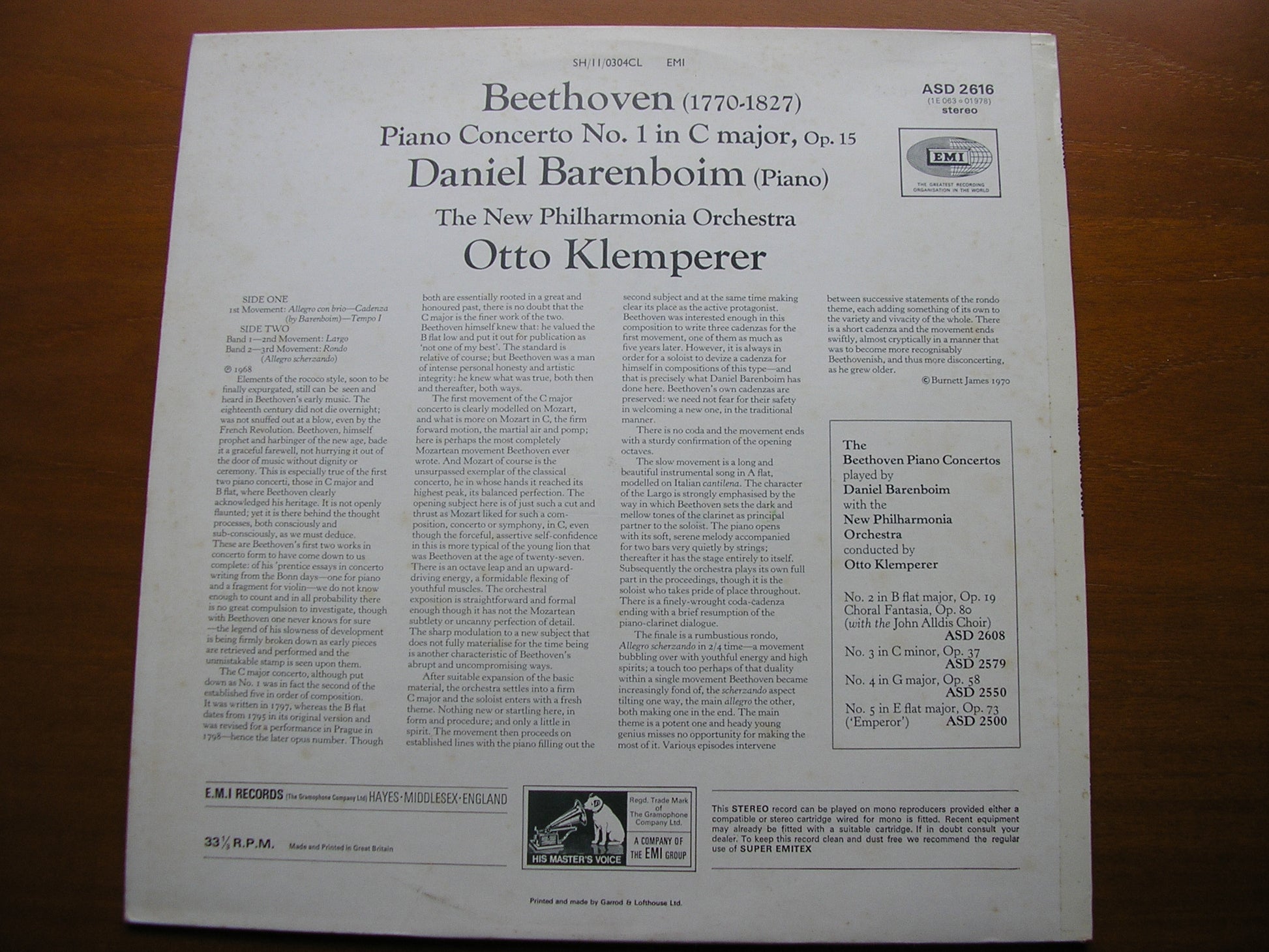 BEETHOVEN: PIANO CONCERTO No. 1 BARENBOIM / NEW PHILHARMONIA / OTTO KLEMPERER ASD 2616