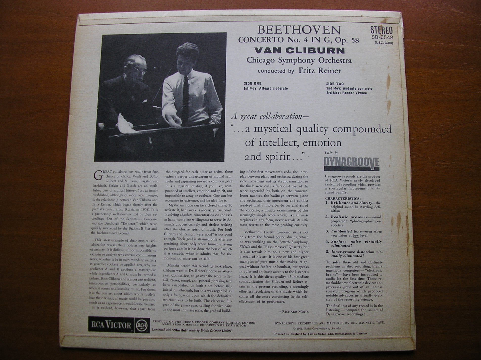 SB 6548  BEETHOVEN: PIANO CONCERTO No. 4     VAN CLIBURN / CHICAGO SYMPHONY ORCHESTRA / FRITZ REINER