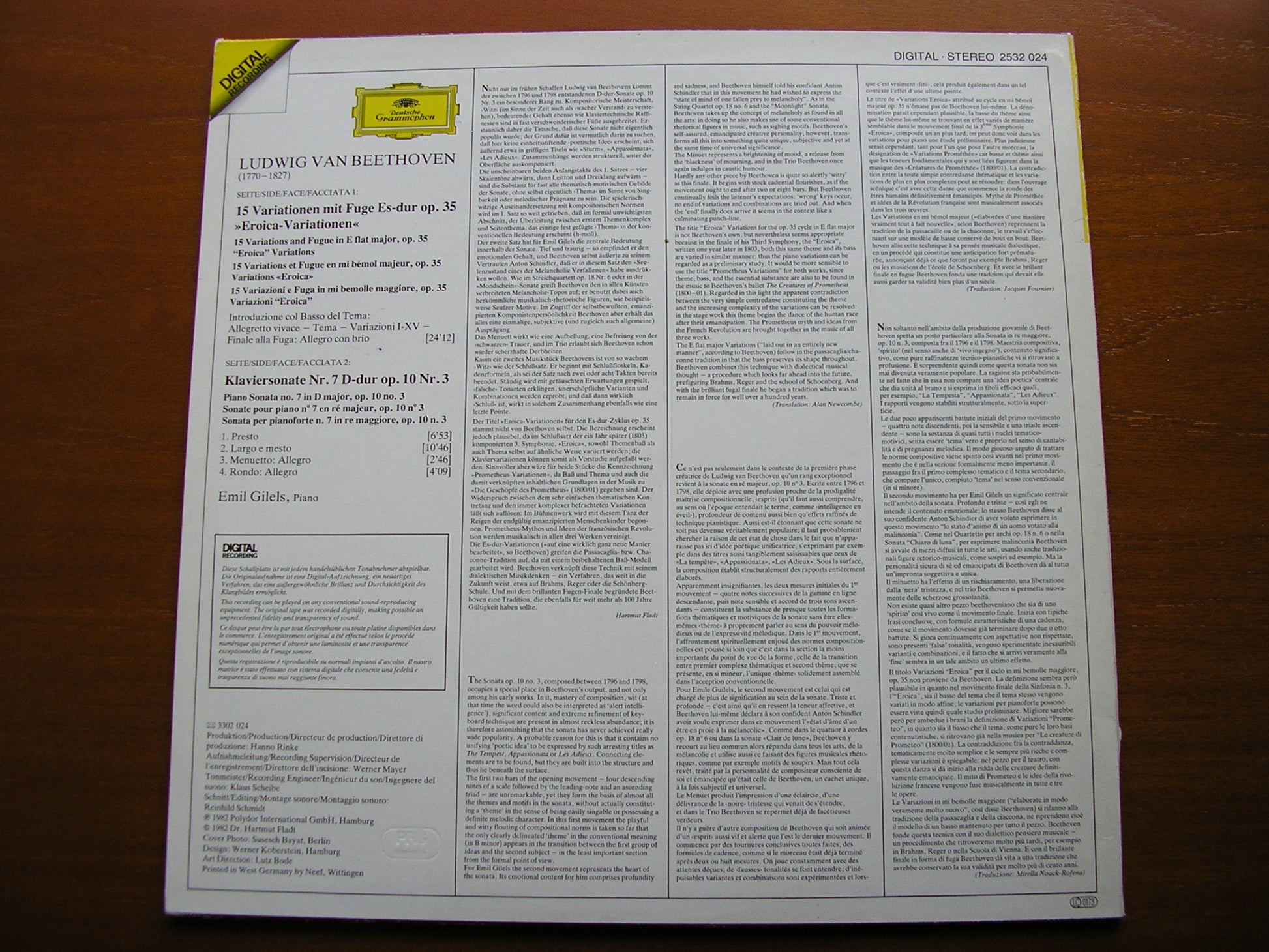 2532 024  BEETHOVEN: PIANO SONATA No. 7 in D Op. 10 No. 3 / EROICA VARIATIONS Op. 35 in E    EMIL GILELS