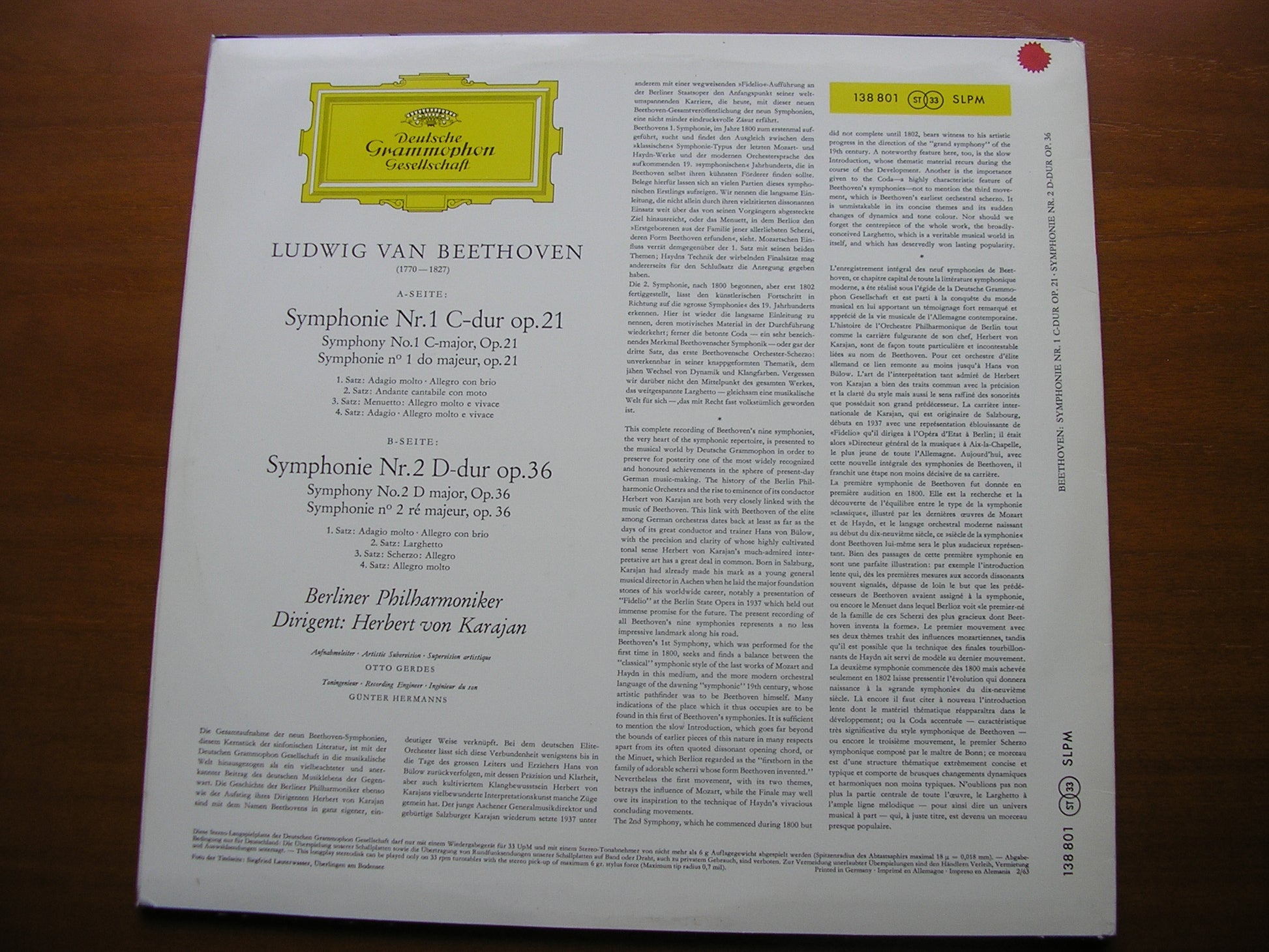 138 801  BEETHOVEN: SYMPHONIES Nos. 1 & 2     HERBERT VON KARAJAN / BERLIN PHILHARMONIC ORCHESTRA