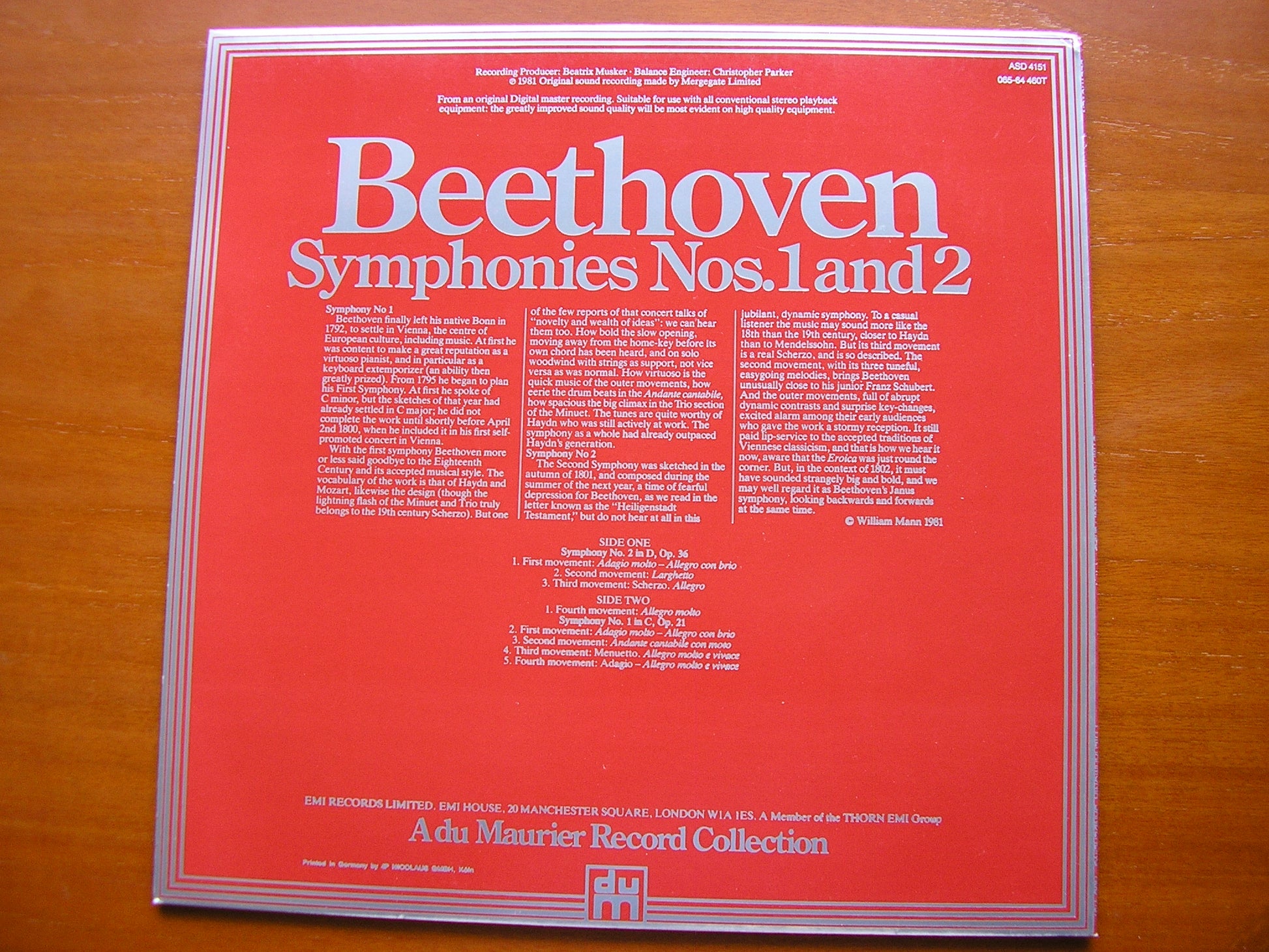 ASD 4151  BEETHOVEN: SYMPHONIES Nos. 1 & 2    KURT SANDERLING / PHILHARMONIA ORCHESTRA