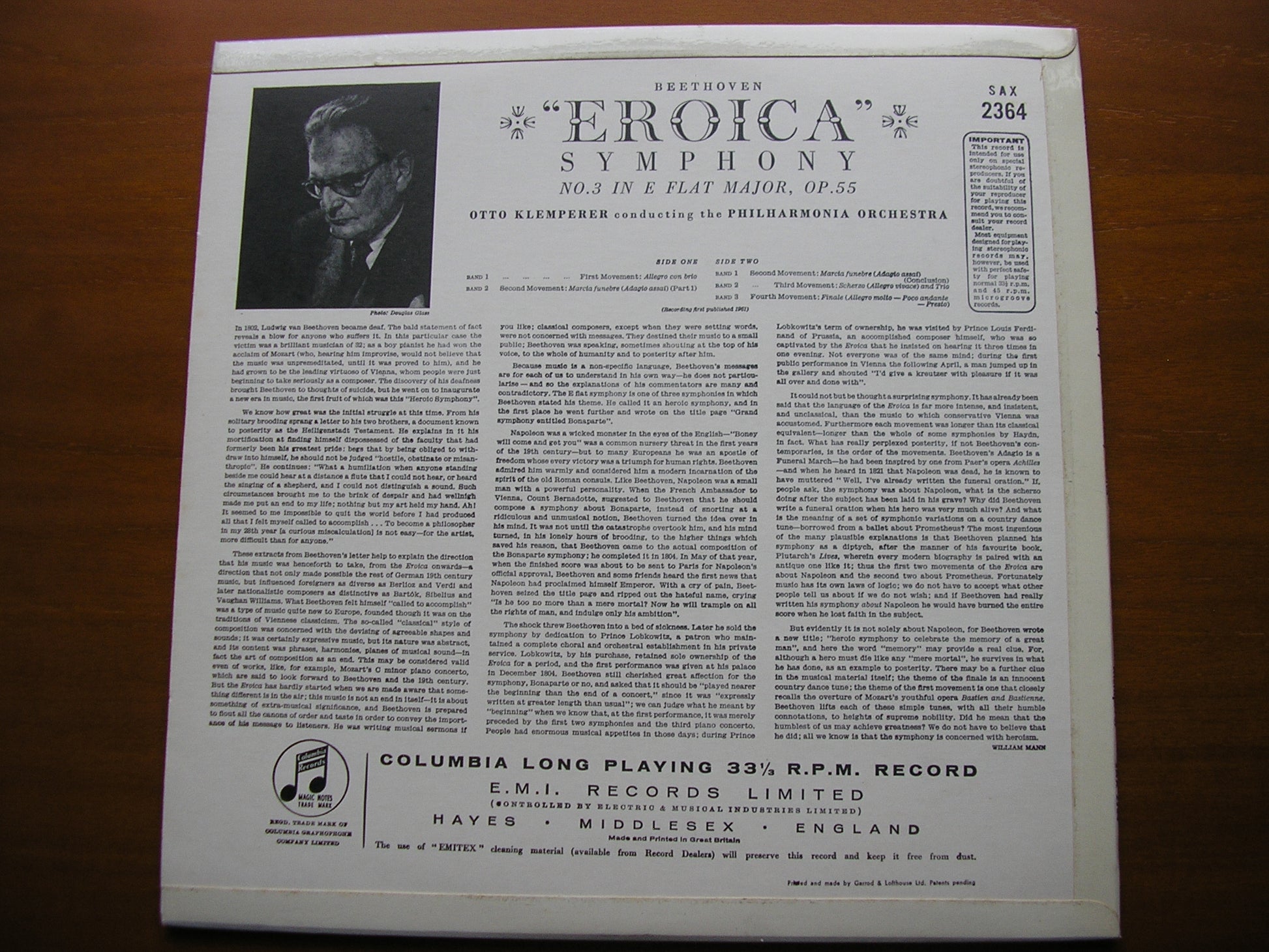 SAX 2364 BEETHOVEN: SYMPHONY No. 3 'Eroica' KLEMPERER / PHILHARMONIA