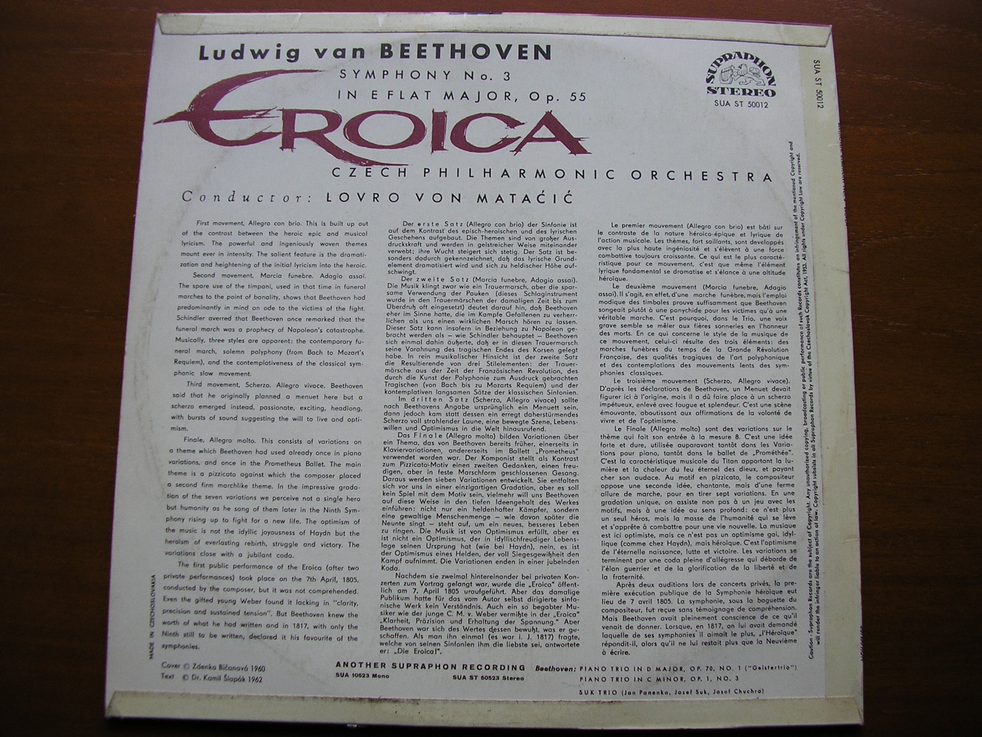 SUA ST 50012  BEETHOVEN: SYMPHONY No. 3   LOVRO VON MATACIC / CZECH PHILHARMONIC ORCHESTRA
