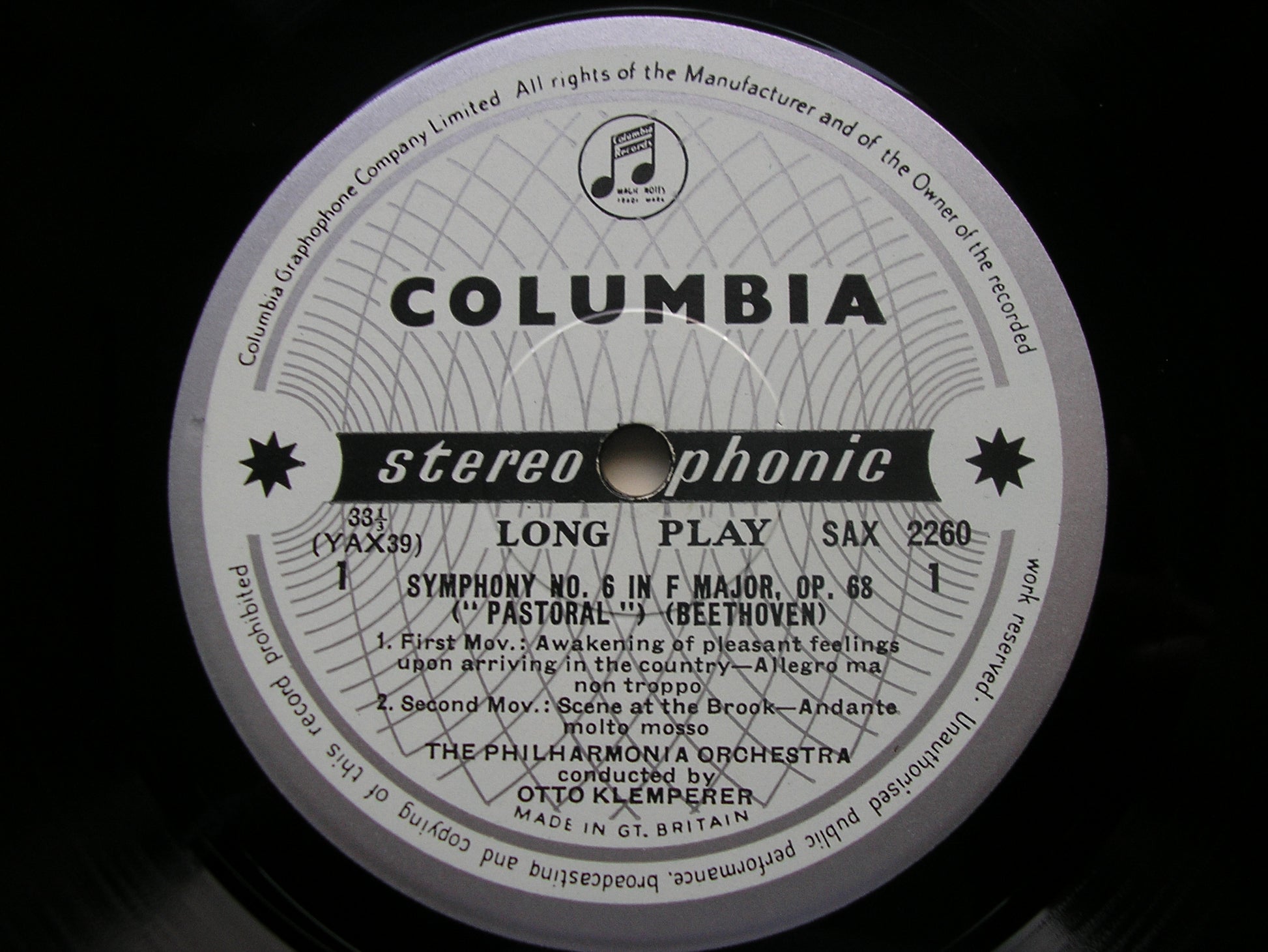 SAX 2260  BEETHOVEN: SYMPHONY No. 6       OTTO KLEMPERER / PHILHARMONIA ORCHESTRA