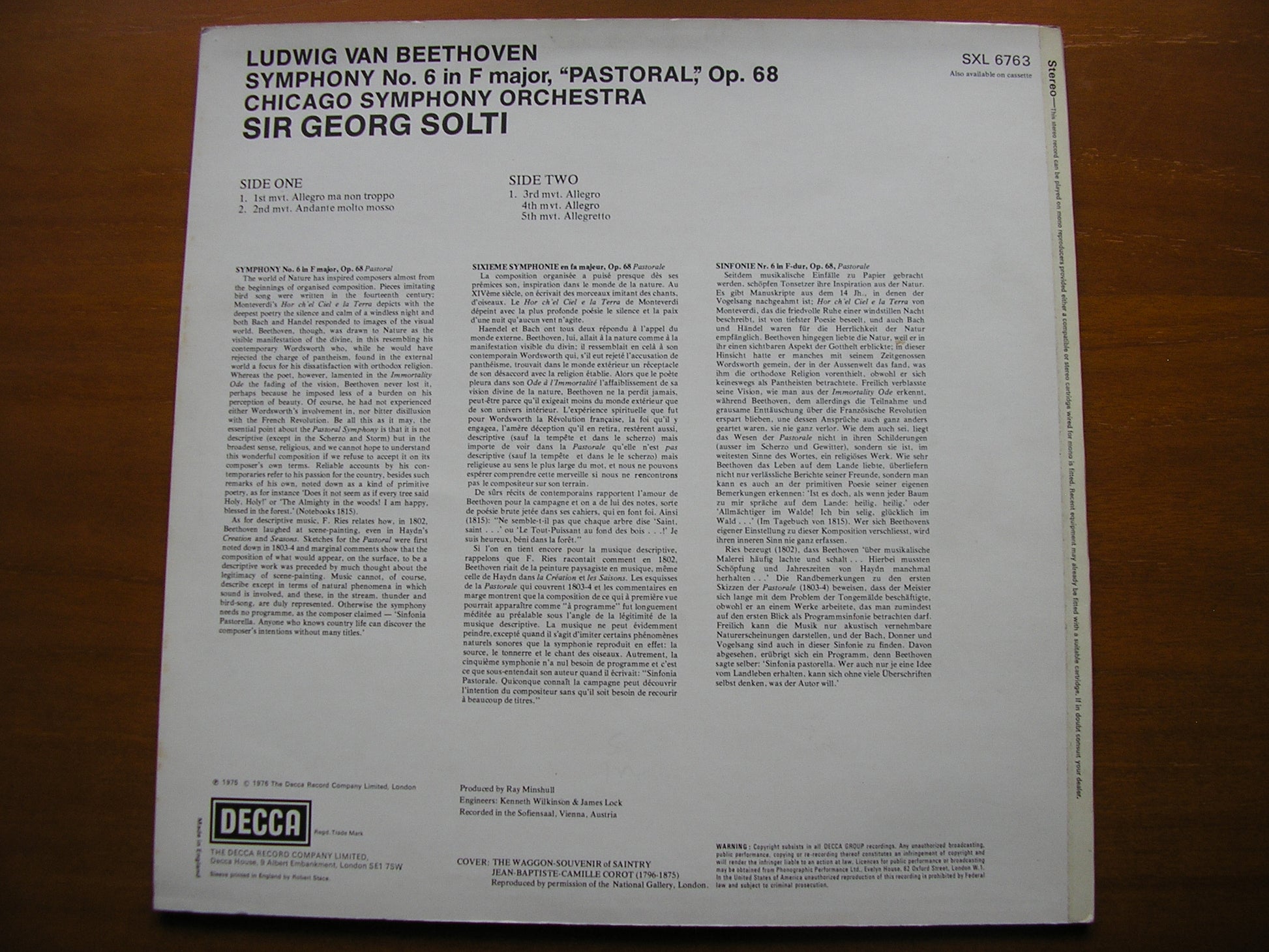 SXL 6763  BEETHOVEN: SYMPHONY No. 6 'Pastoral'        SIR GEORG SOLTI / CHICAGO SYMPHONY ORCHESTRA