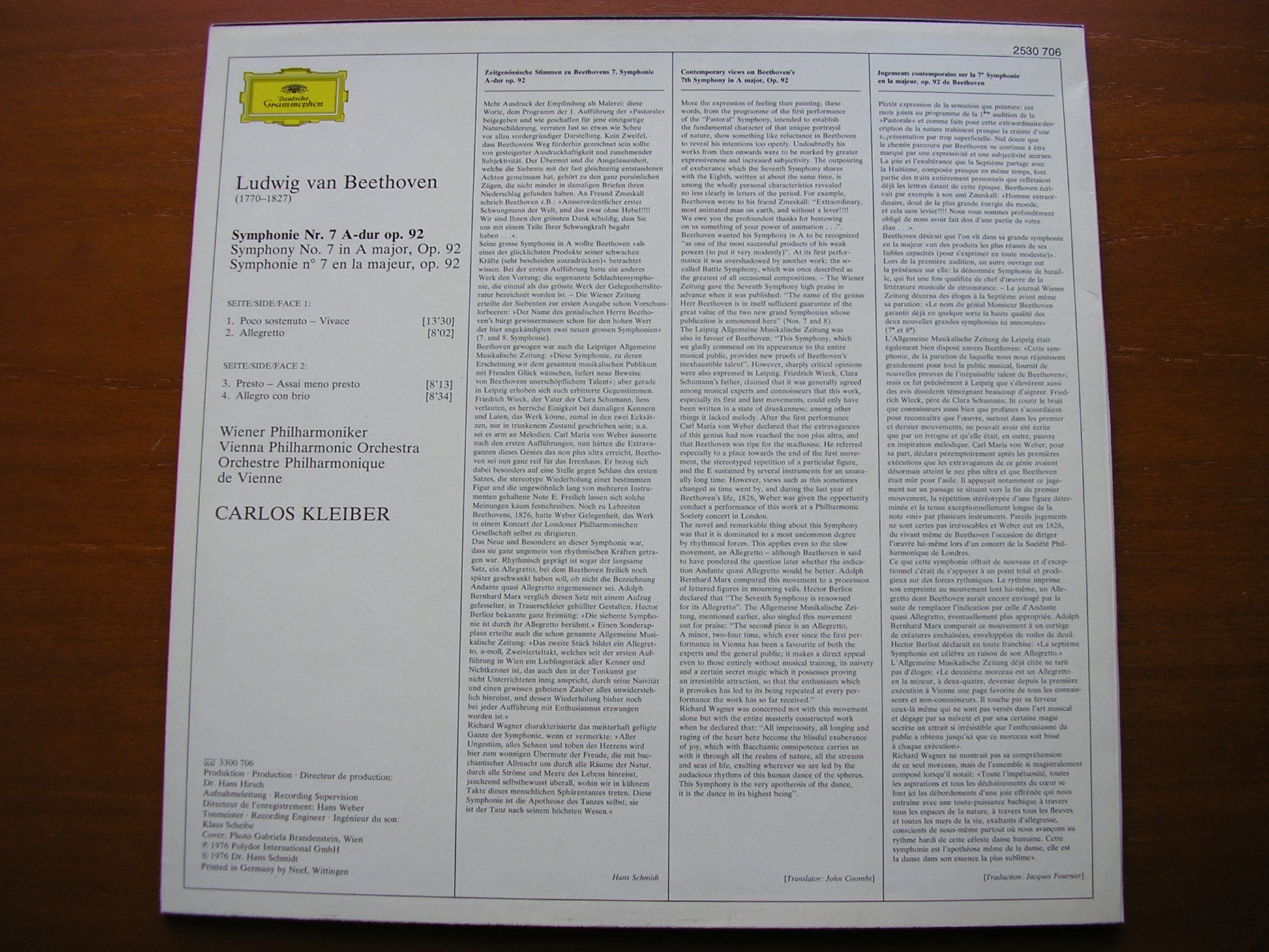 BEETHOVEN: SYMPHONY No. 7 KLEIBER / VIENNA PHILHARMONIC 2530 706