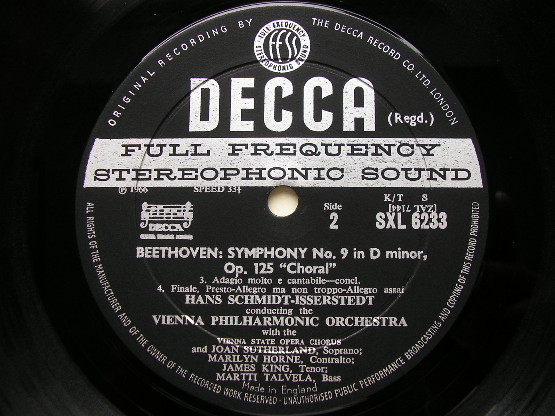 SXL 6233  BEETHOVEN: SYMPHONY No. 9    JOAN SUTHERLAND / MARILYN HORNE / JAMES KING / MARTTI TALVELA / VIENNA PHILHARMONIC ORCHESTRA / HANS SCHMIDT - ISSERSTEDT