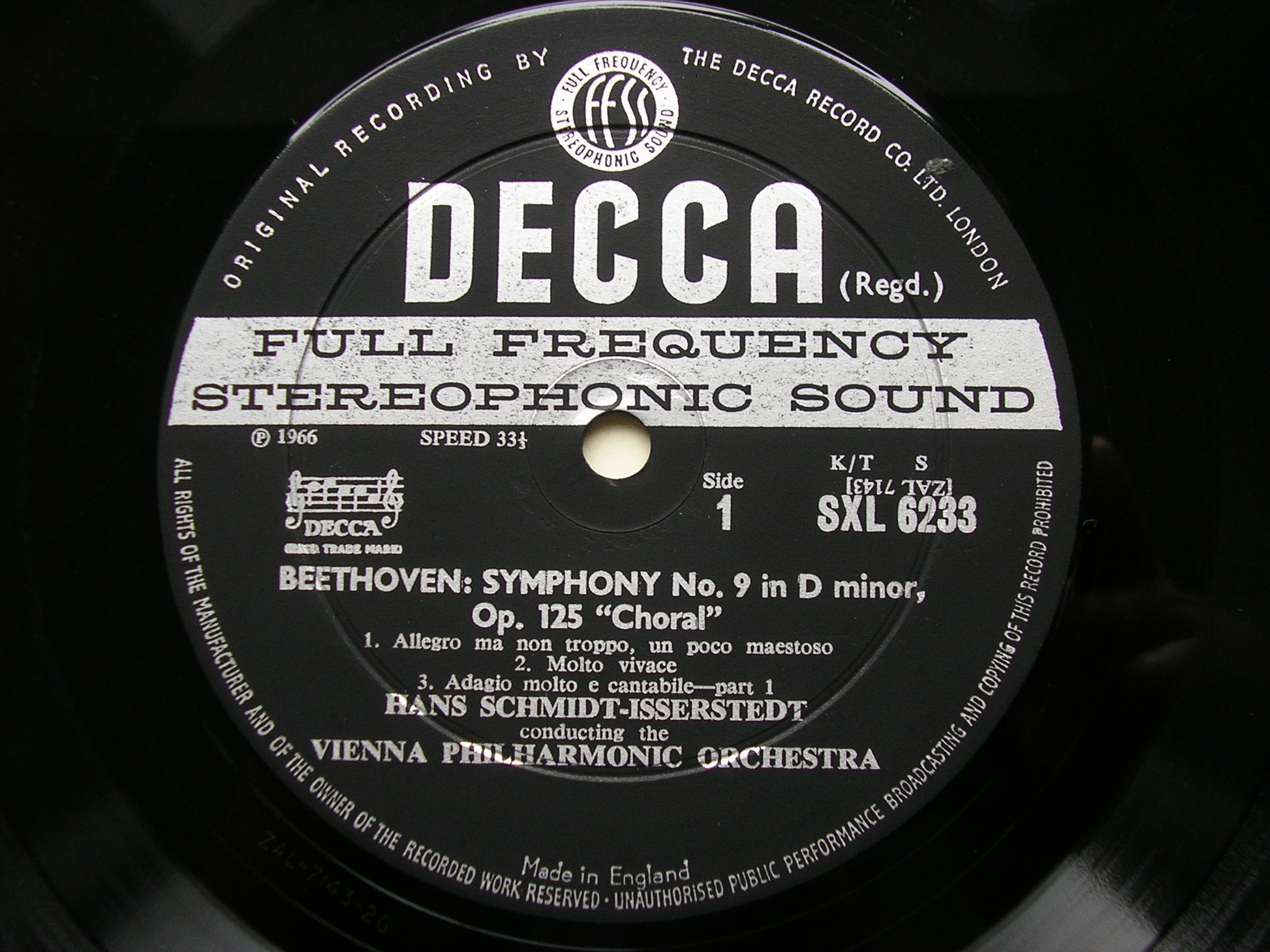 BEETHOVEN: SYMPHONY No. 9 'Choral' SOLOISTS / VIENNA PHILHARMONIC / SCHMIDT - ISSERSTEDT SXL 6233