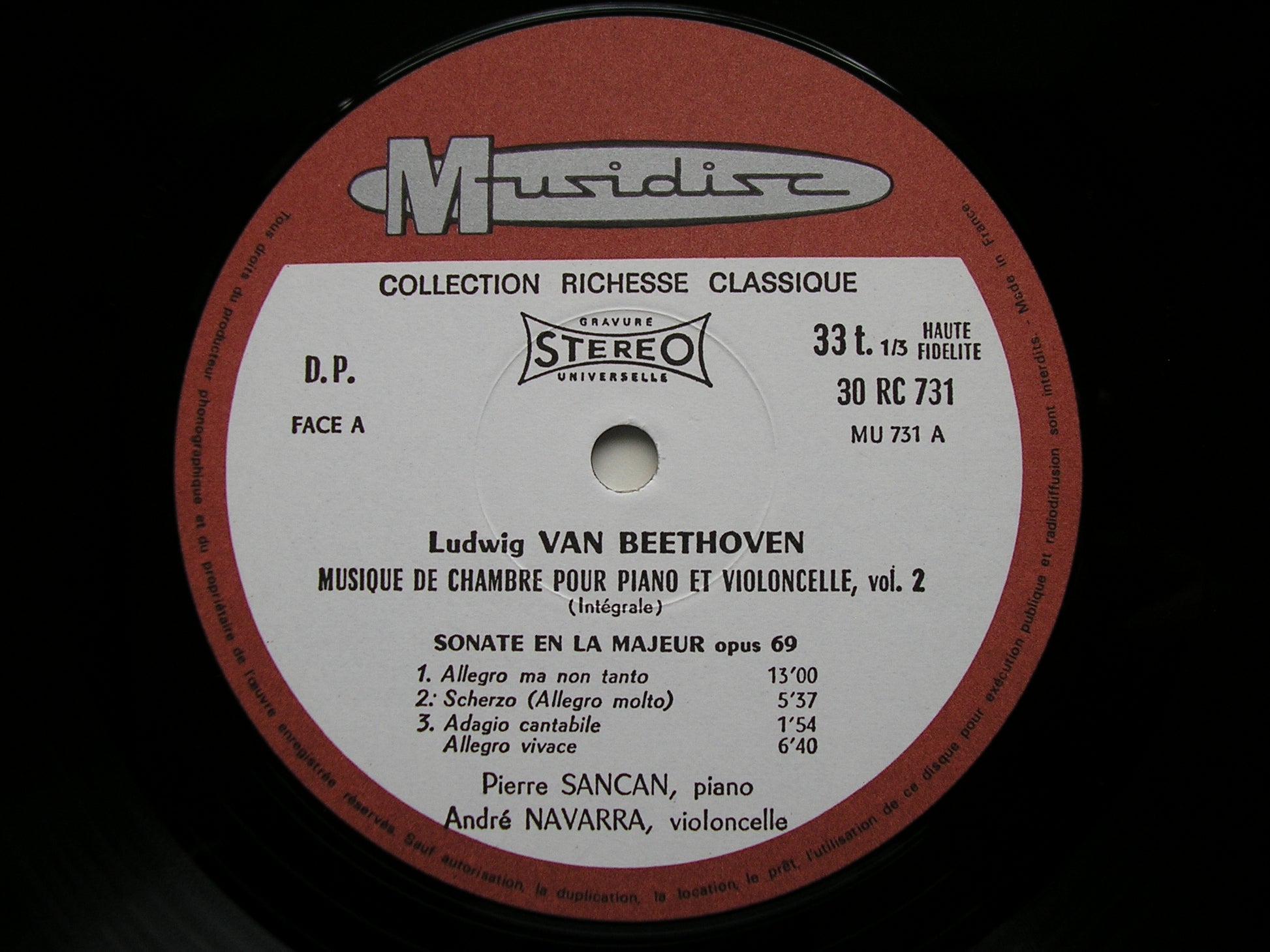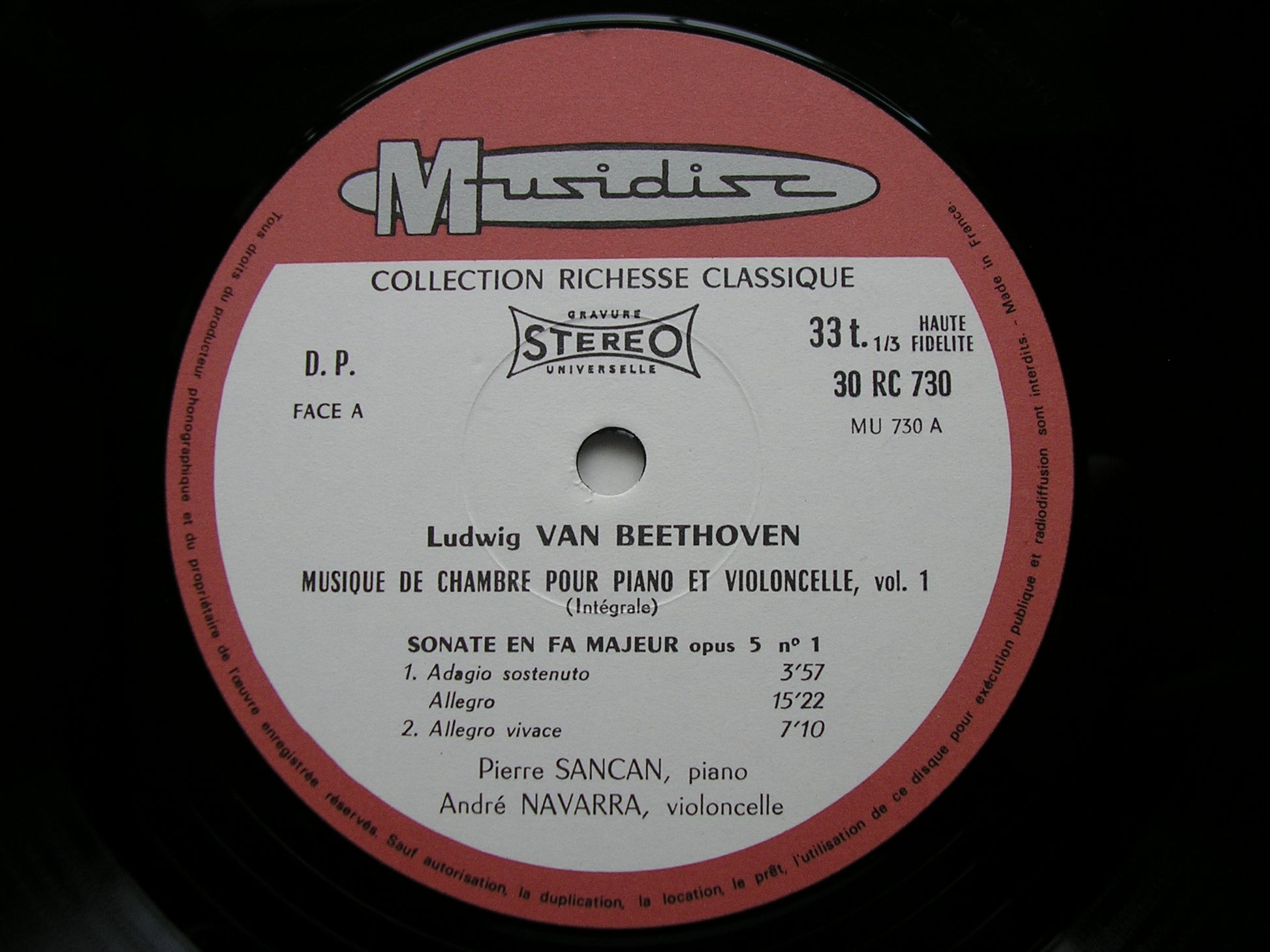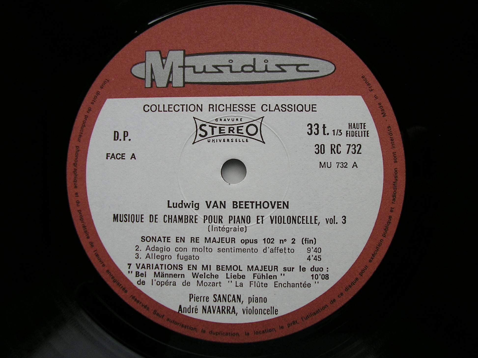 CRC 15  BEETHOVEN: THE COMPLETE SONATAS FOR CELLO & PIANO / VARIATIONS ON 'Bei Mannern' & 'Ein Madchen' from 'DIE ZAUBERFLOTE' / VARIATIONS on a theme from 'JUDAS MACCEBEUS'    ANDRE NAVARRA / PIERRE SANCAN