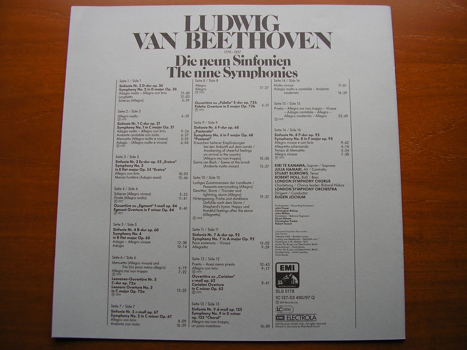 German efficiency seems to have lapsed momentarily when publishing this set. Side 16 containing symphony no. 8 is not identified as such, although the symphony's four movements are listed on the label.