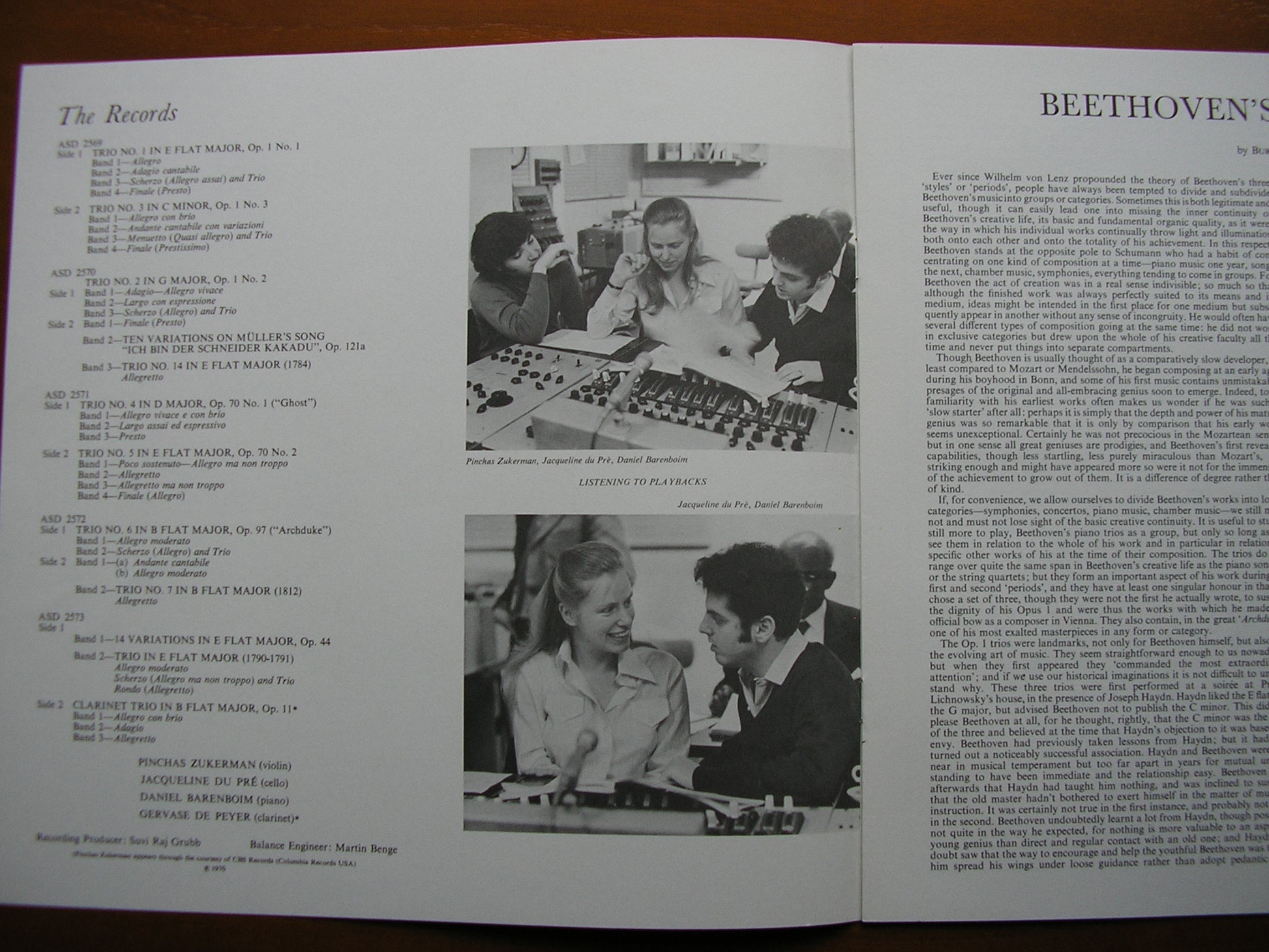 SLS 789  BEETHOVEN: THE PIANO TRIOS    JACQUELINE DU PRE / DANIEL BARENBOIM / PINCHAS ZUKERMAN