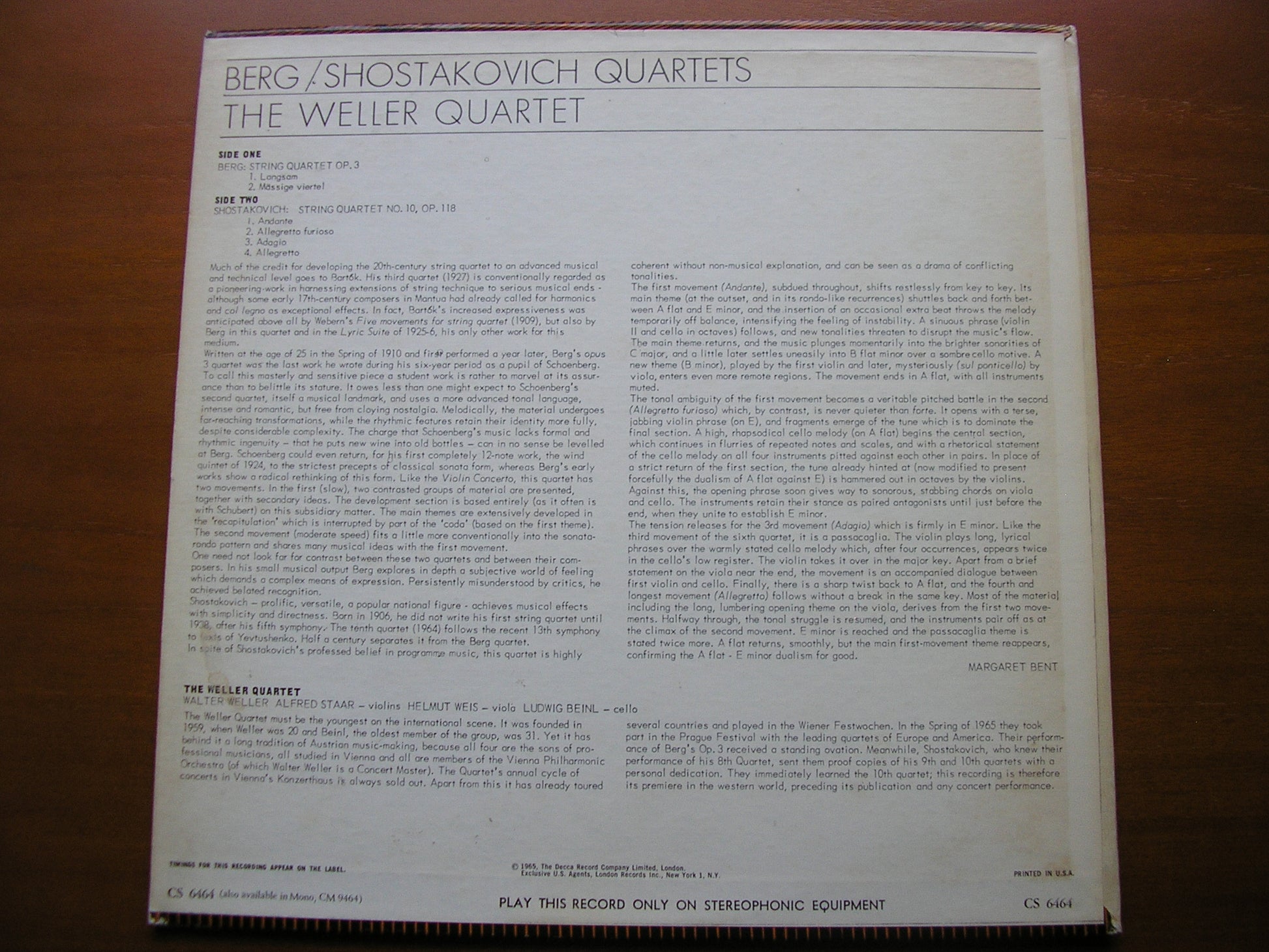 CS 6464  BERG: STRING QUARTET Op. 3 / SHOSTAKOVICH: STRING QUARTET No. 10       THE WELLER QUARTET