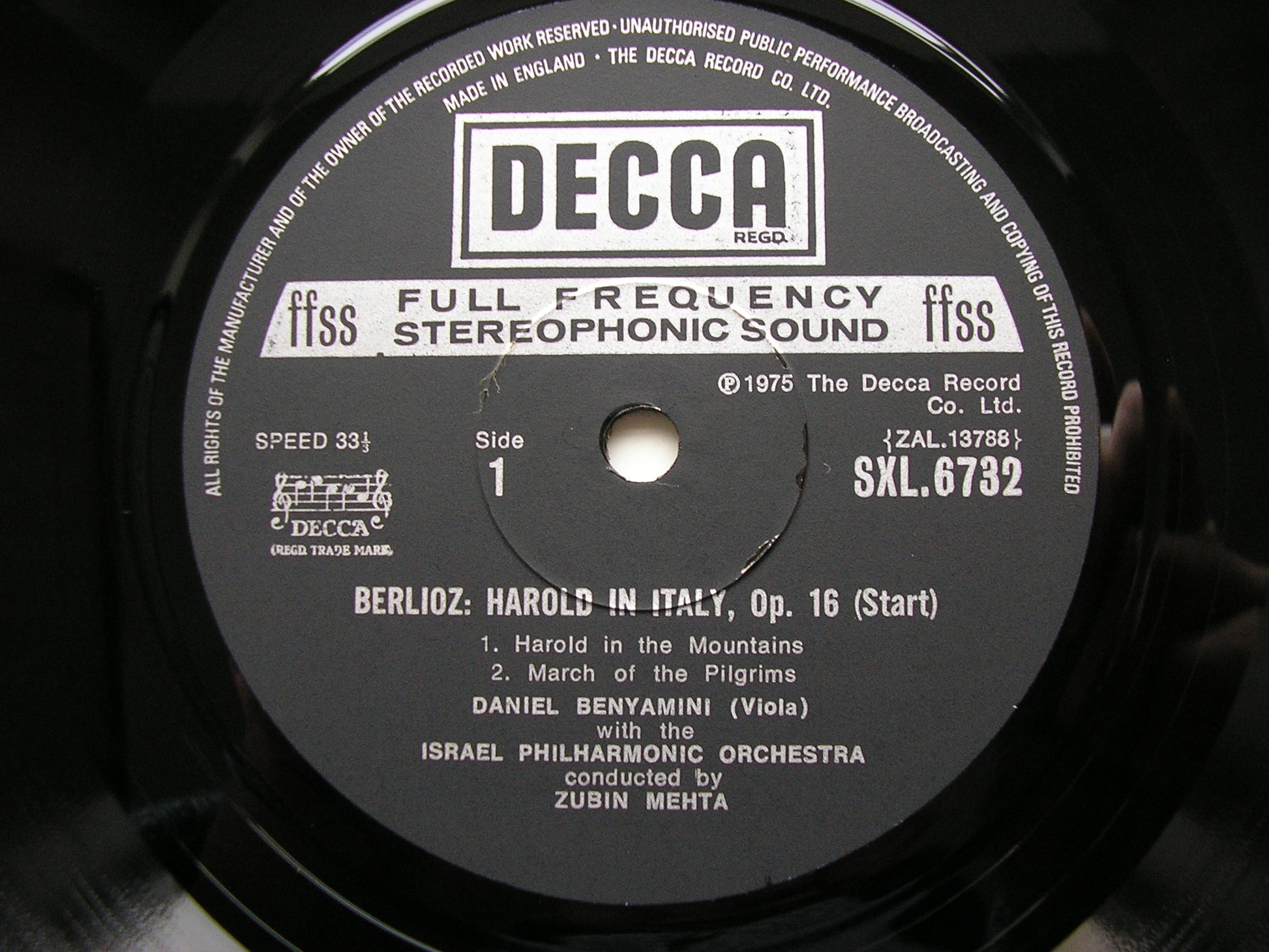 SXL 6732  BERLIOZ: HAROLD IN ITALY    DANIEL BENYAMINI / ISRAEL PHILHARMONIC ORCHESTRA / ZUBIN MEHTA