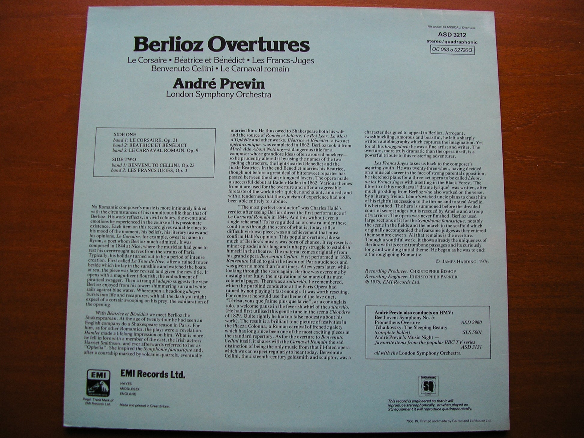 BERLIOZ: OVERTURES ANDRE PREVIN / LONDON SYMPHONY ORCHESTRA ASD 3212