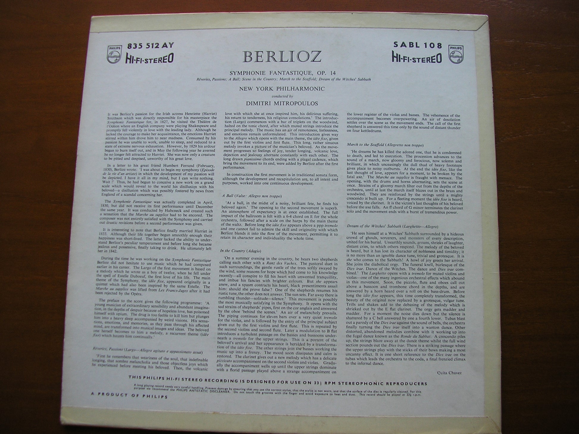 SABL108  BERLIOZ: SYMPHONIE FANTASTIQUE        DIMITRI MITROPOULOS / NEW YORK PHILHARMONIC ORCHESTRA