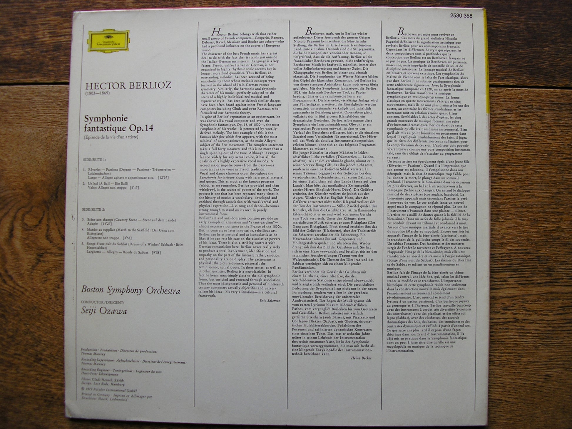 2530 358  BERLIOZ: SYMPHONIE FANTASTIQUE   SEIJI OZAWA / BOSTON SYMPHONY ORCHESTRA