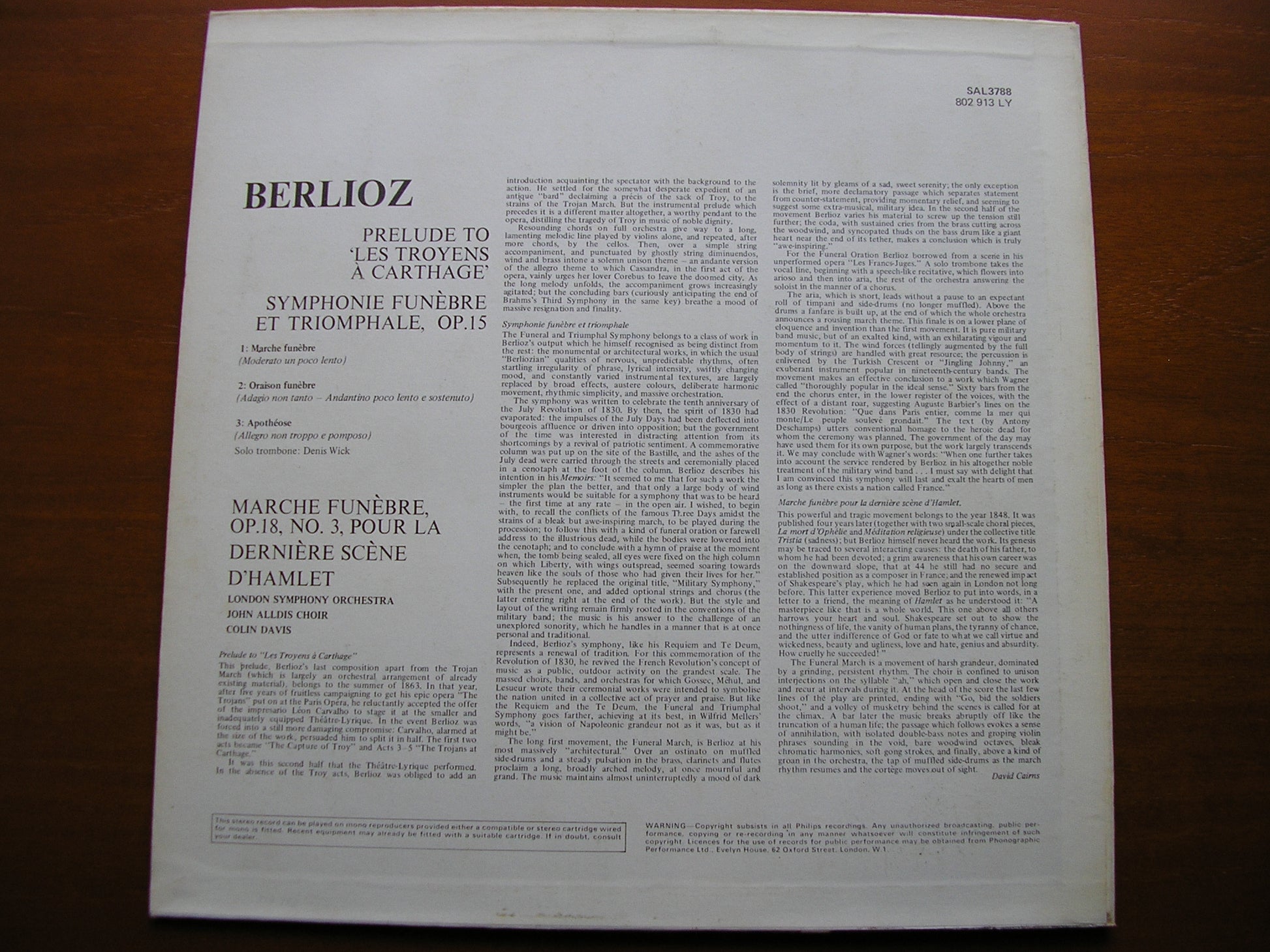 SAL 3788  BERLIOZ: SYMPHONIE FUNEBRE ET TRIOMPHALE   COLIN DAVIS / LONDON SYMPHONY ORCHESTRA