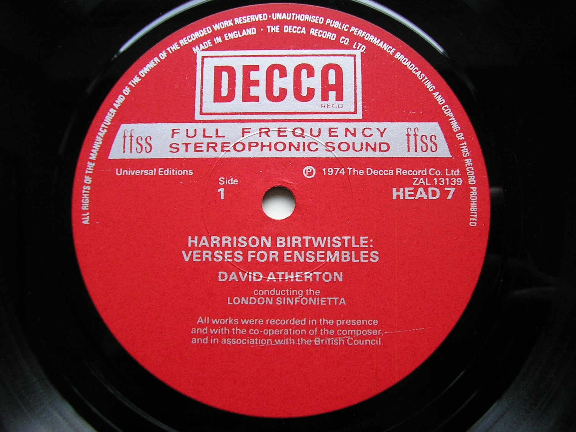 HEAD 7  BIRTWISTLE: VERSES FOR ENSEMBLE / NENIA - THE DEATH OF ORPHEUS / THE FIELDS OF SORROW     JANE MANNING & THE MATRIX / ALAN HACKER / LONDON SINFONIETTA / DAVID ATHERTON