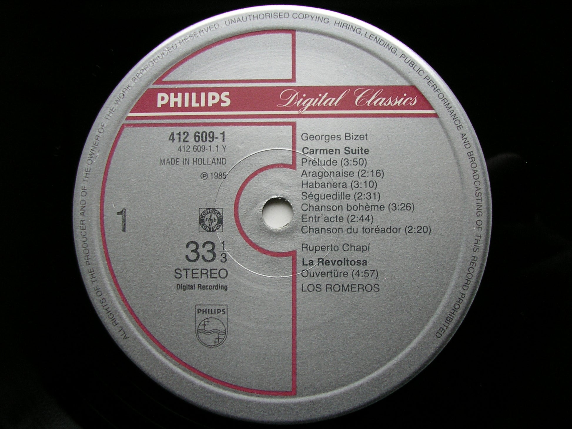 412 609  BIZET: CARMEN SUITE / CHAPI: OVERTURE LA REVOLTOSA / FALLA: DANCES FROM LA VIDA BREVE /  CANCIONES ESPANOLAS Nos. 4 / 5 & 7 / TORROBA: SONATINA TRIANERA