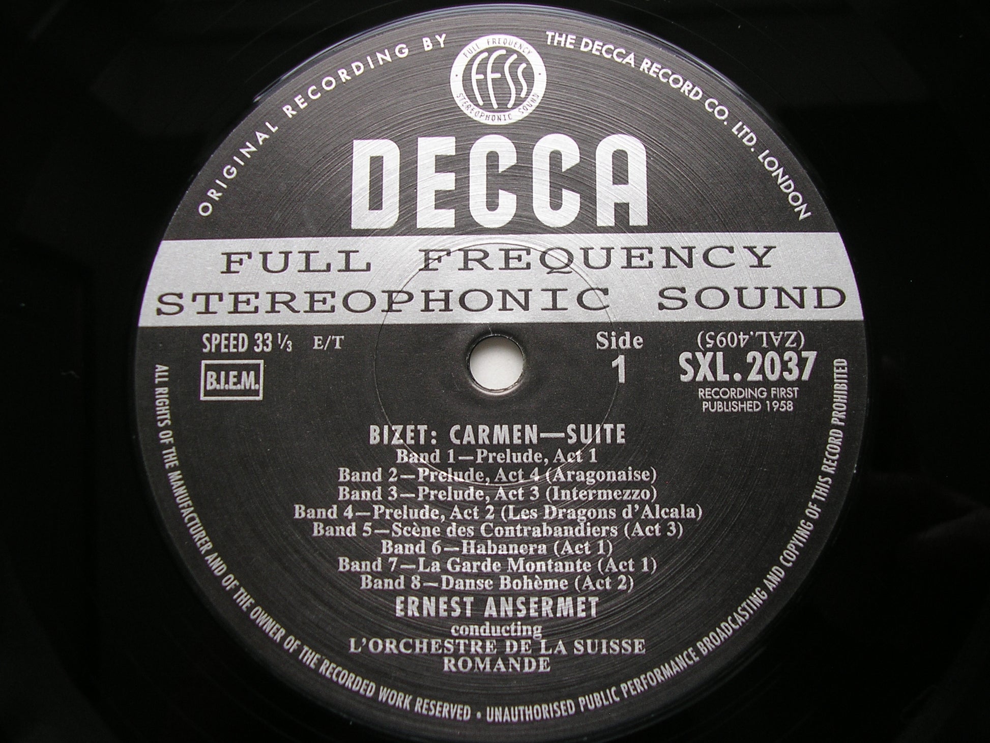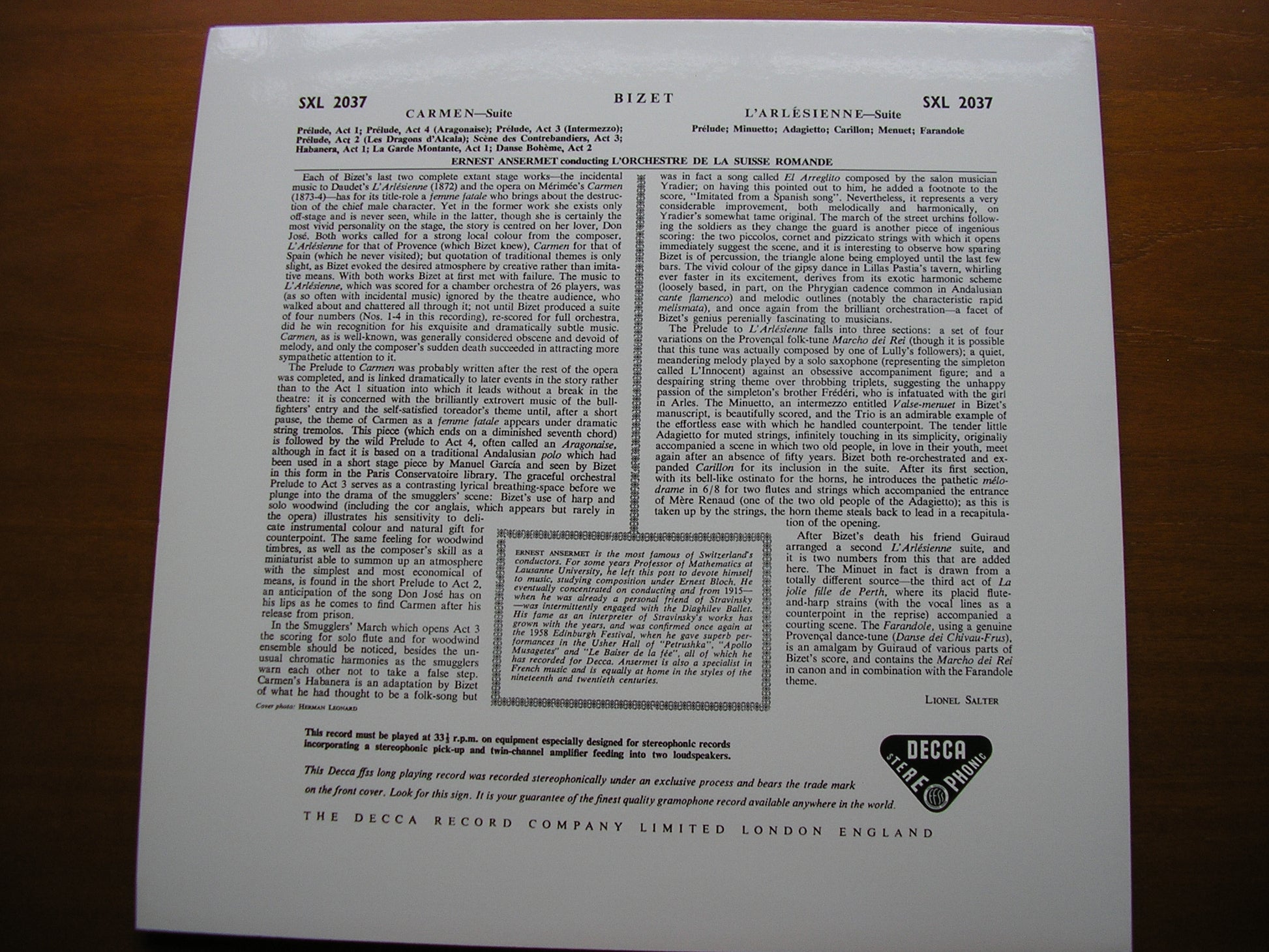 SXL 2037  BIZET: CARMEN Suite / L'ARLESIENNE Suite      ERNEST ANSERMET / SUISSE ROMANDE ORCHESTRA