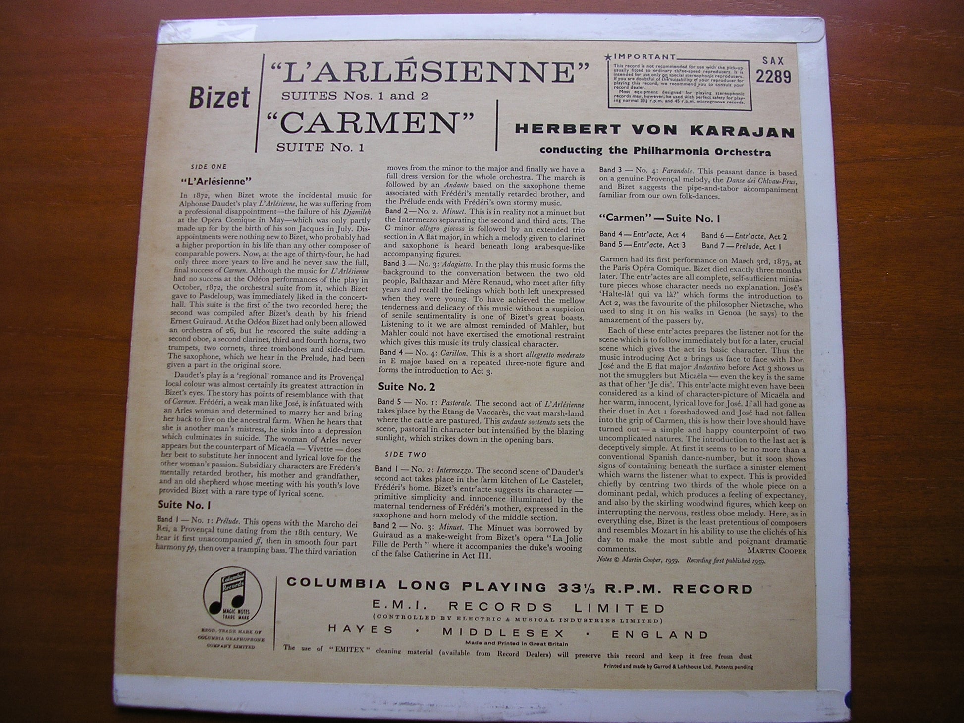 SAX 2289  BIZET: L'ARLESIENNE Suites / CARMEN Suite    HERBERT VON KARAJAN / PHILHARMONIA ORCHESTRA